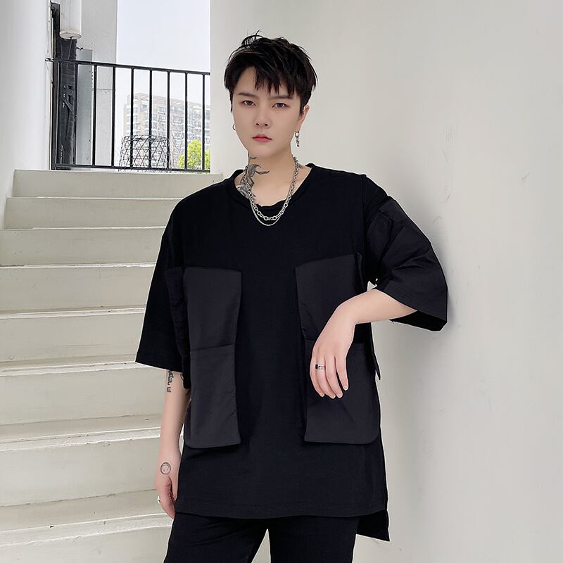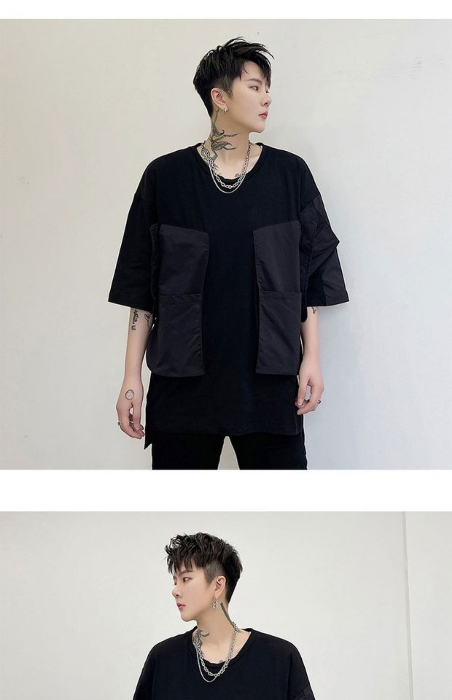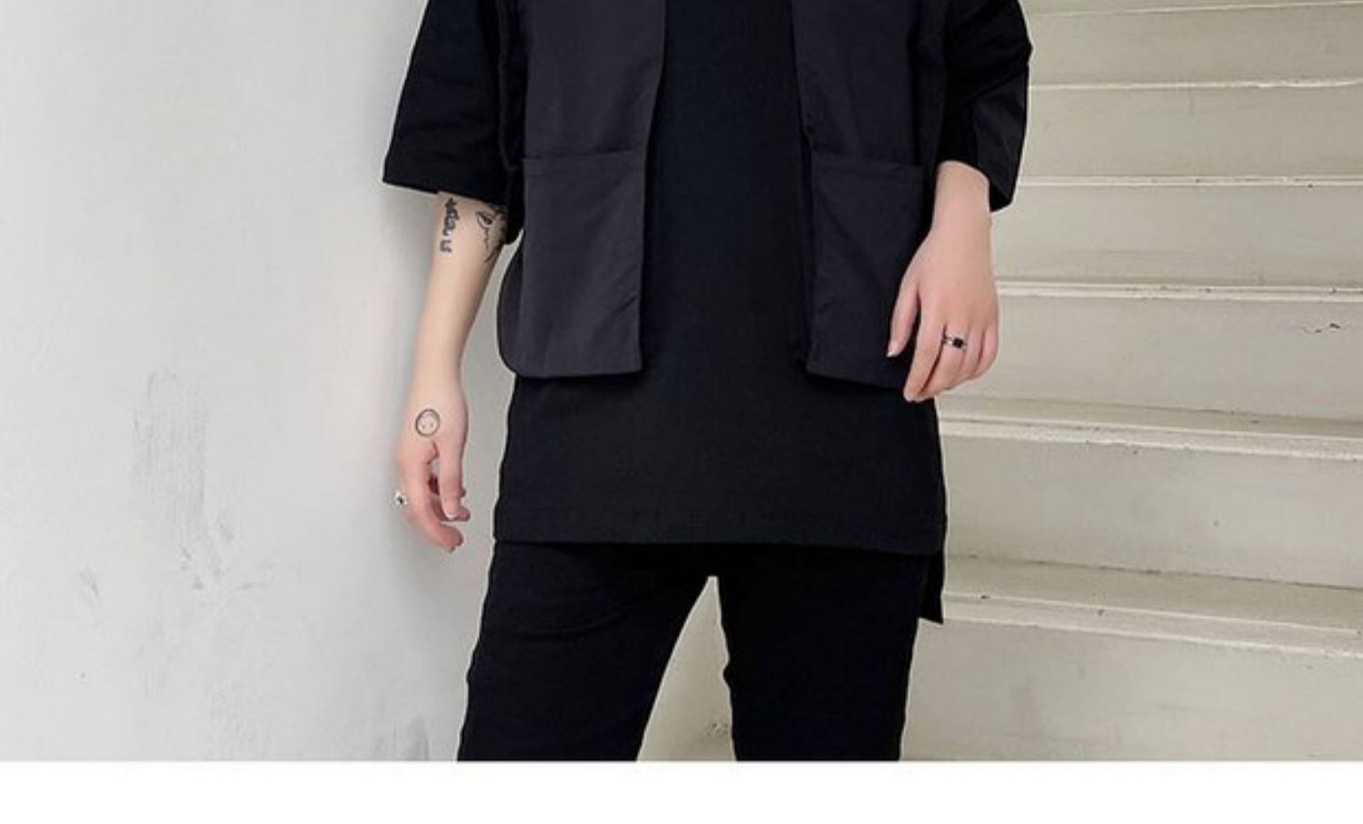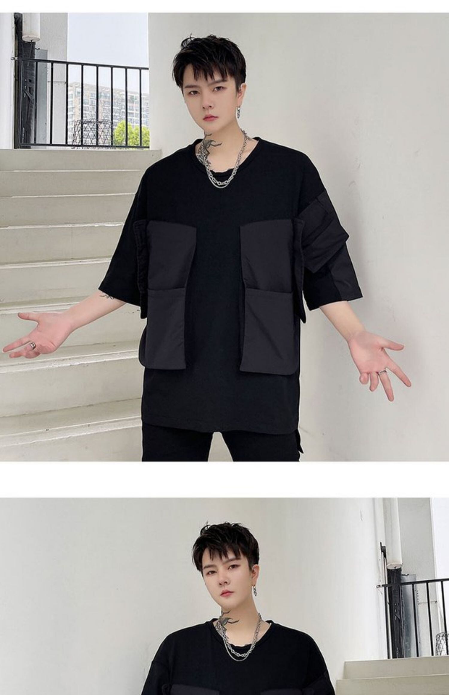 病みカッコイイ メンズファッション ストリートファッション ヒップホップ 個性的 裏原 サマーTシャツ シャツ ルーズ 夏物 ポケット多め マルチポケット ✝ おしゃれ メンズ 48454438281