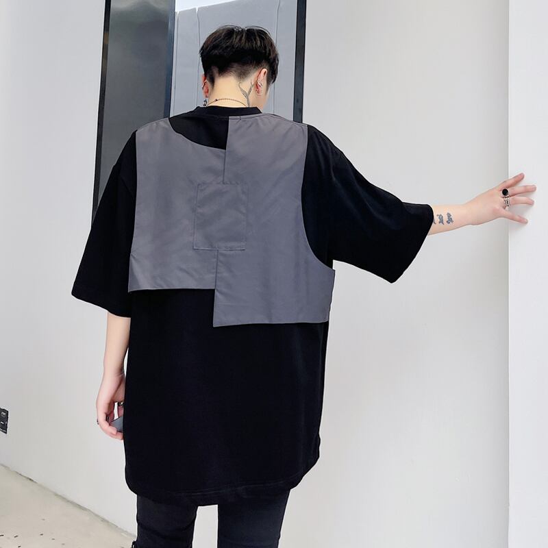 病みカッコイイ メンズファッション ストリートファッション ヒップホップ 個性的 裏原 サマーバックカラーTシャツ ルーズトップス 夏物 ステッチ ✝ おしゃれ メンズ 60762268511