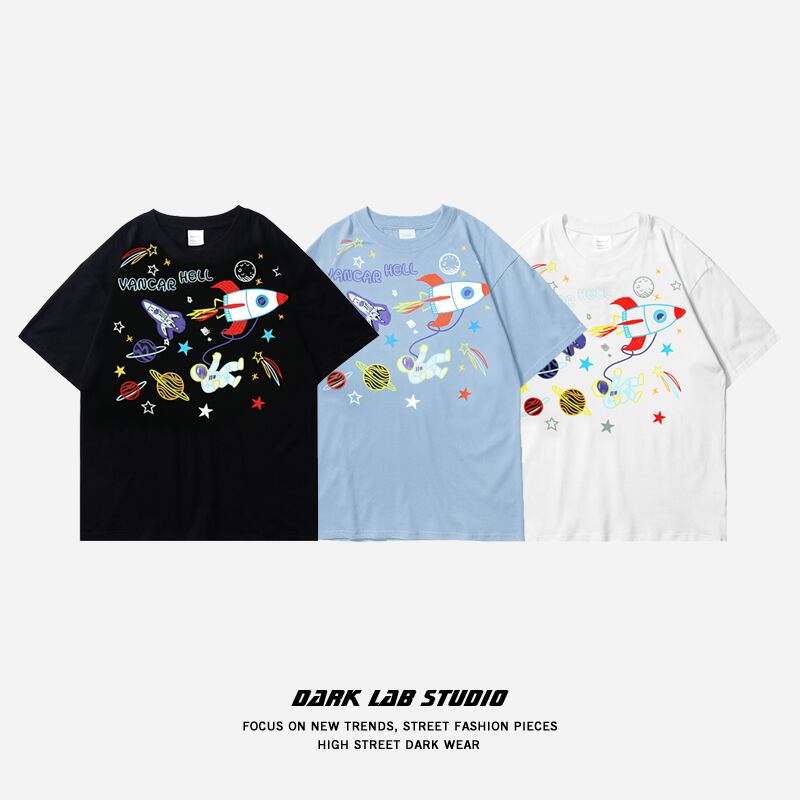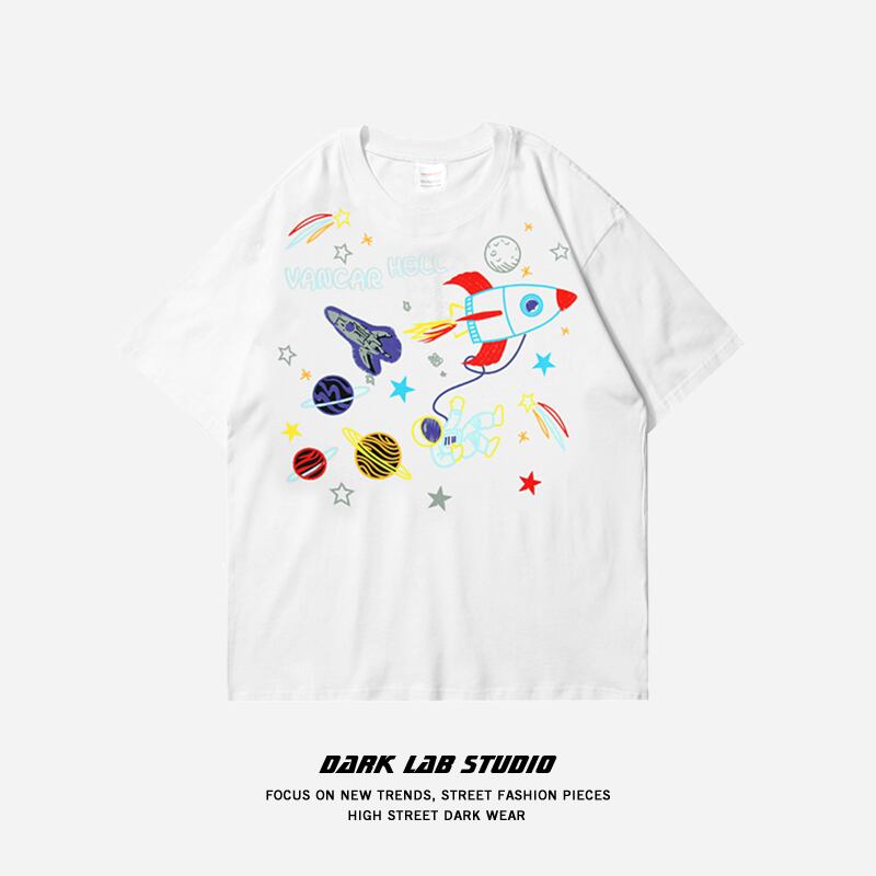 病みカッコイイ メンズファッション ストリートファッション ヒップホップ 個性的 裏原 サマープリントTシャツ シャツ ルーズカジュアルラウンドネック コットン ストリート 夏物 Oネック ✝ メンズファッション74053185773
