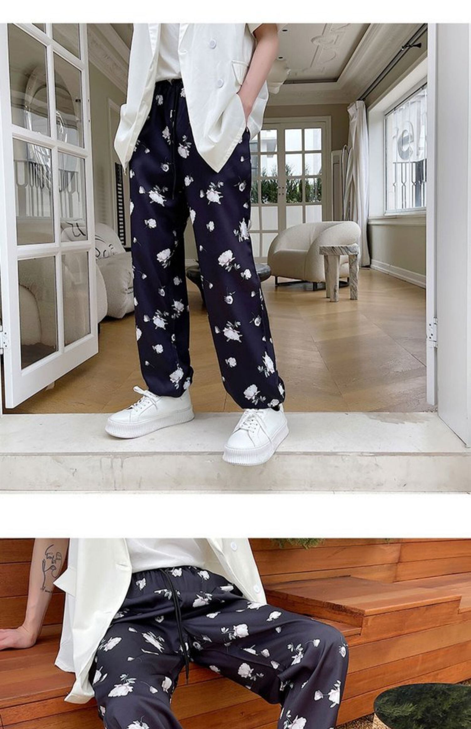 病みカッコイイ メンズファッション ストリートファッション ヒップホップ 個性的 裏原 スプリングサマースタンダードFlowerデザイン プリント柄カジュアルパンツ ルーズ レトロ 春物 夏物 ドレス フラワーデザイン ✝ おしゃれ メンズ 13462264101