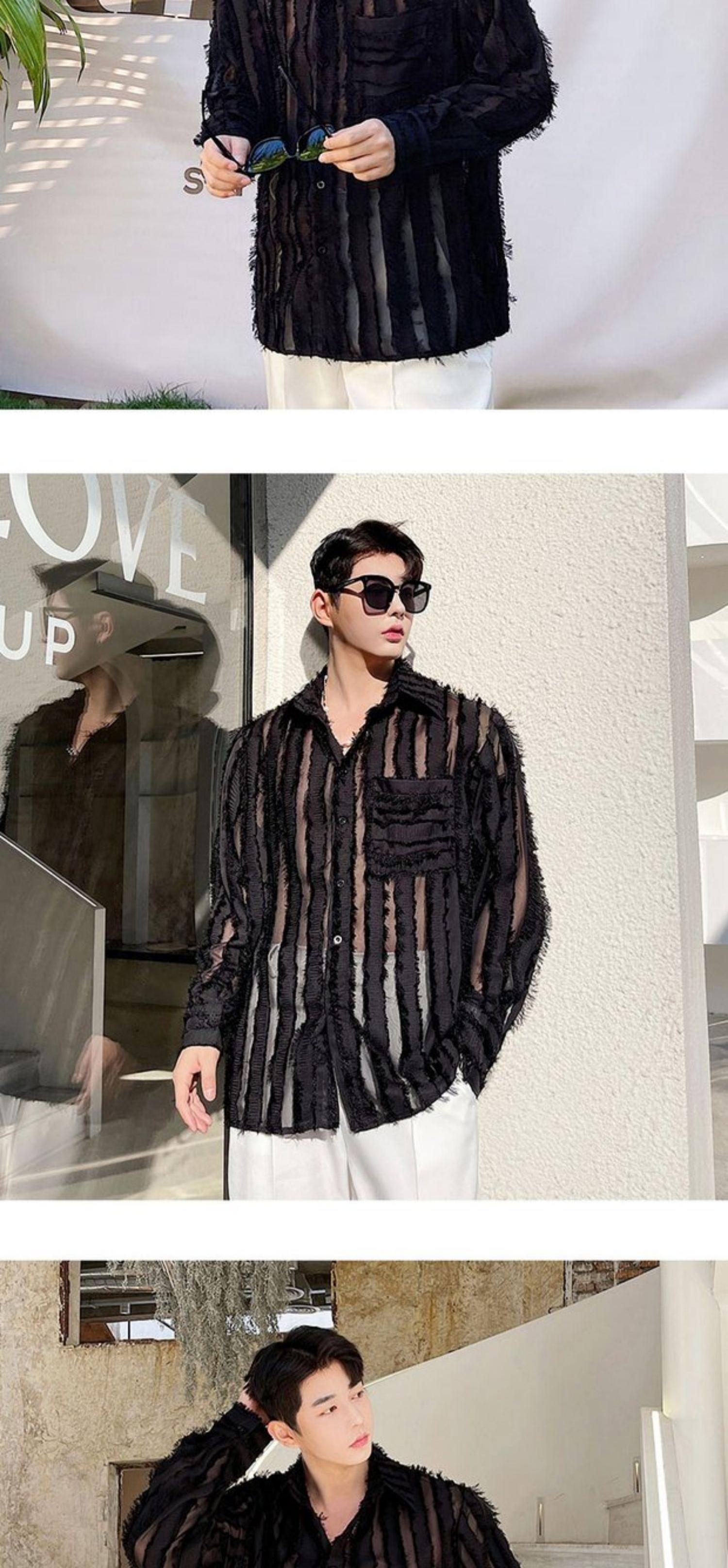 病みカッコイイ メンズファッション ストリートファッション ヒップホップ 個性的 裏原 サマーストライプシャツ ロング 夏物 ドレス ✝ おしゃれ メンズ 84759226822