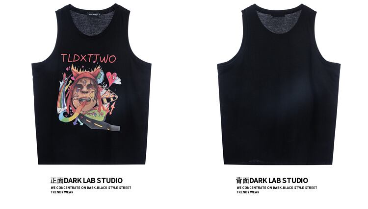病みカッコイイ メンズファッション ストリートファッション ヒップホップ 個性的 裏原 サマーダークプリントルーズノースリーブTシャツ ストリート 夏物 ヨーロピアン ✝ メンズファッション3789061208