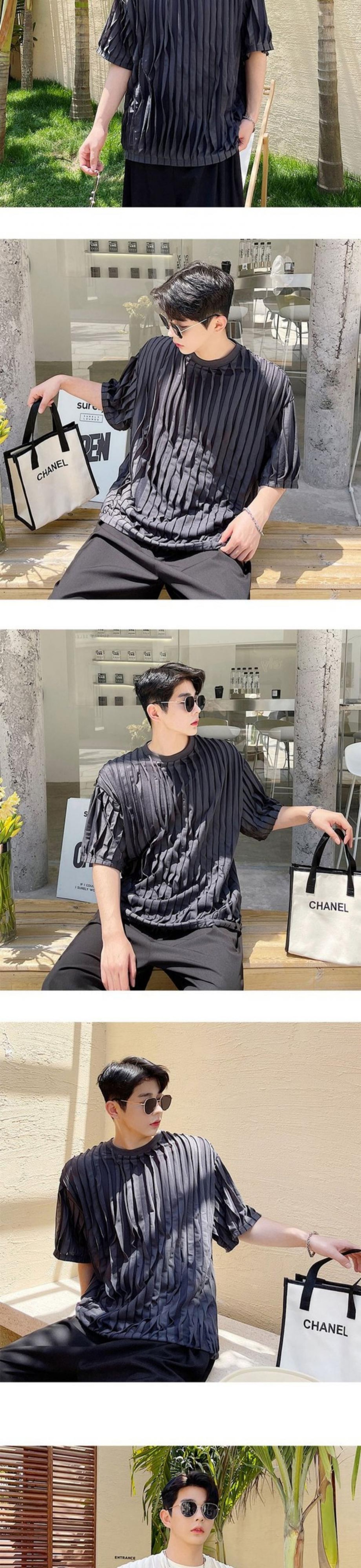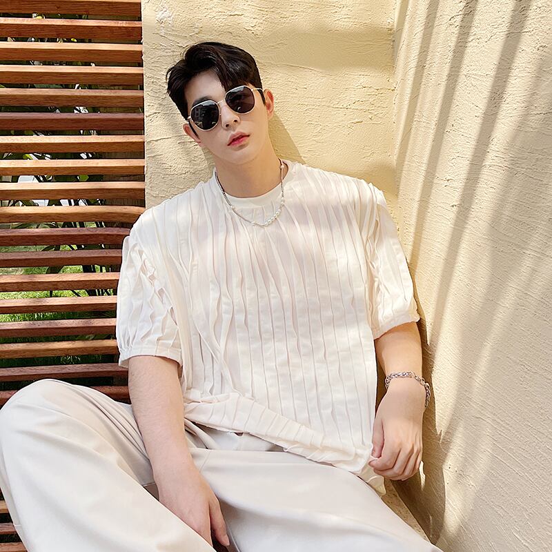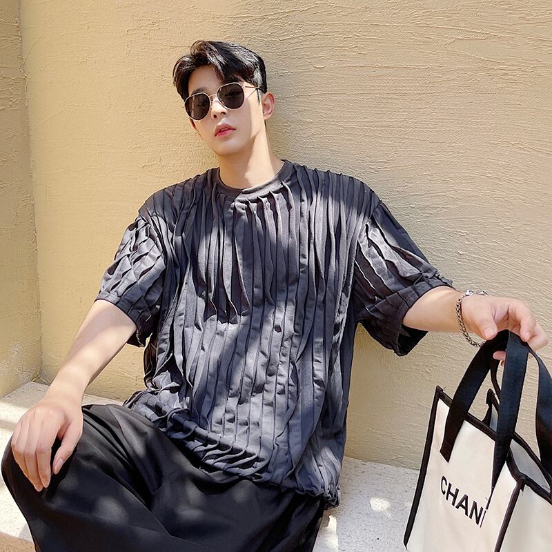 病みカッコイイ メンズファッション ストリートファッション ヒップホップ 個性的 裏原 サマートップス プリーツTシャツ 夏物 ✝ おしゃれ メンズ 17850373570