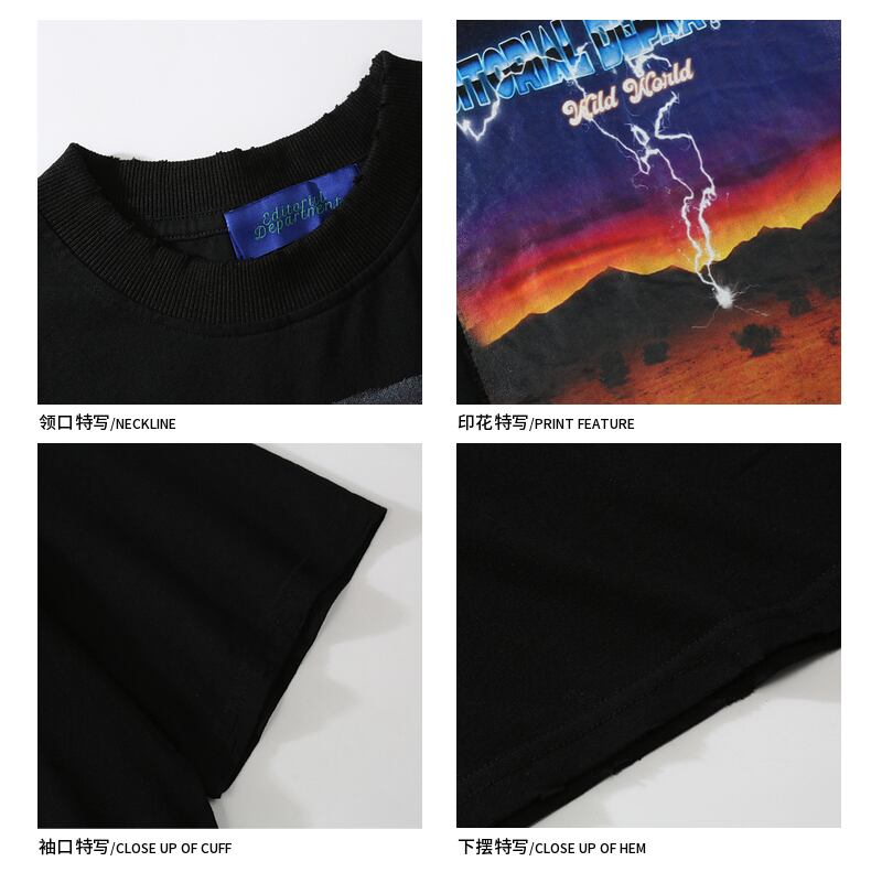 病みカッコイイ メンズファッション ストリートファッション ヒップホップ 個性的 裏原 サマーダークプリントスリーブTシャツ ストリート 夏物 ✝ メンズファッション72624270480