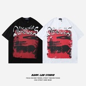 病みカッコイイ メンズファッション ストリートファッション ヒップホップ 個性的 裏原 ダークプリント柄ラウンドネックTシャツ ルーズカジュアル ストリート Oネック ✝ メンズファッション31607041163