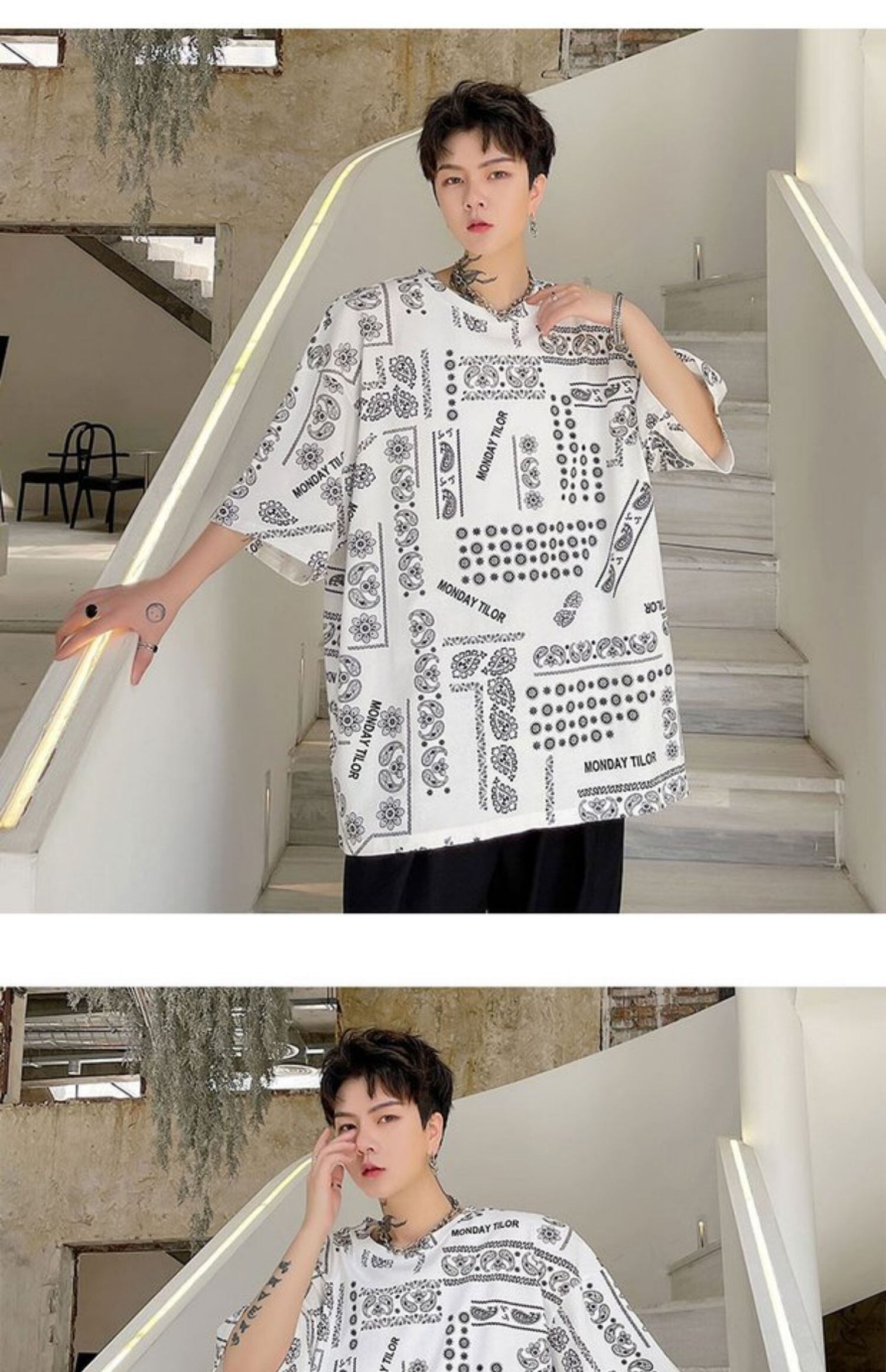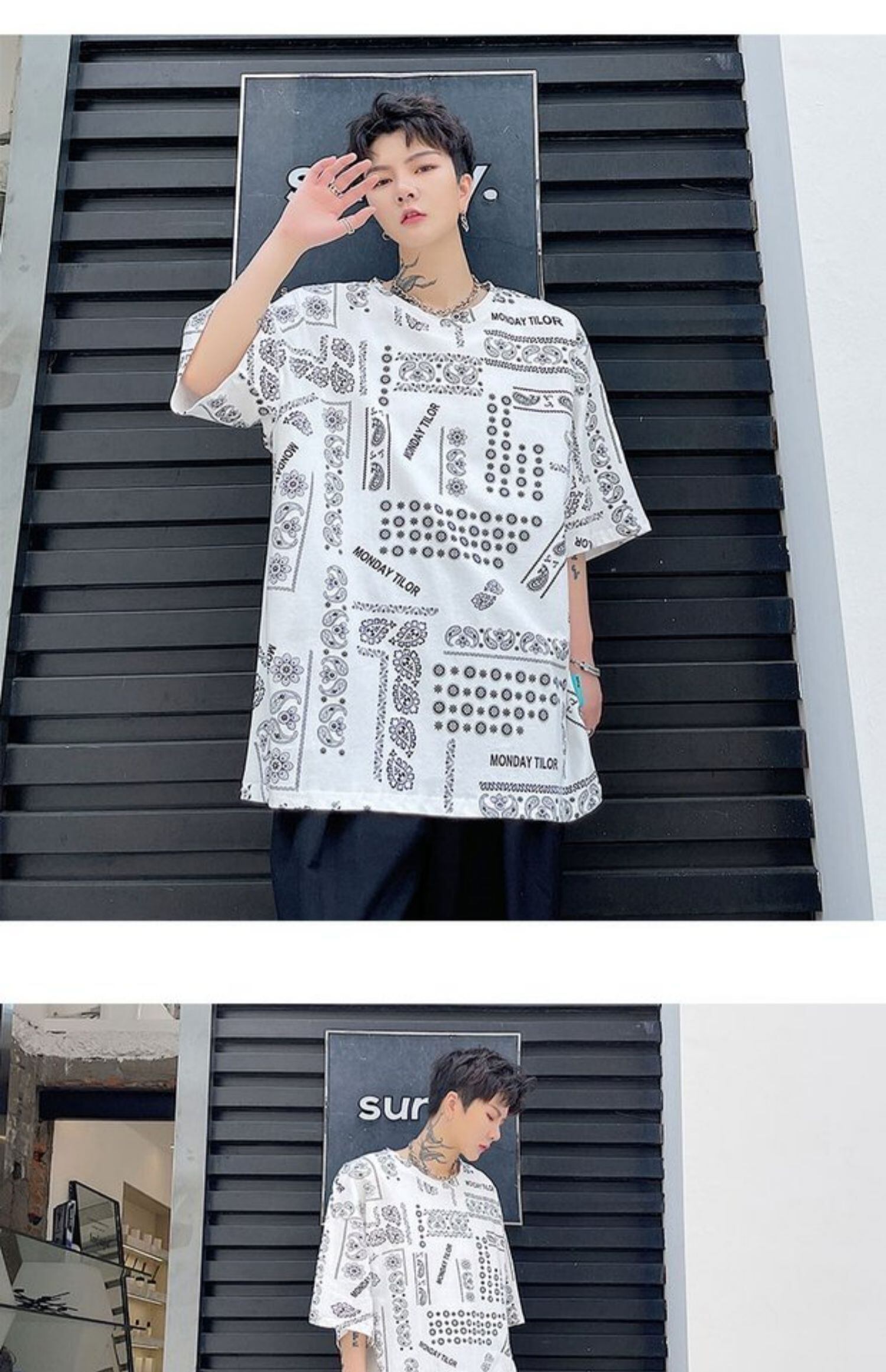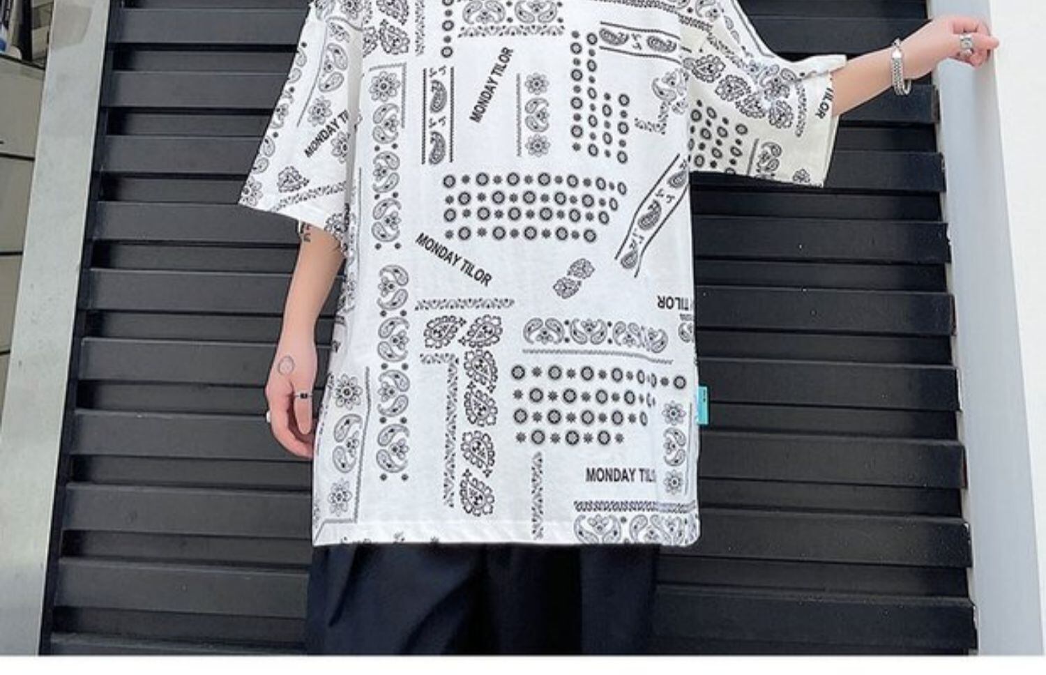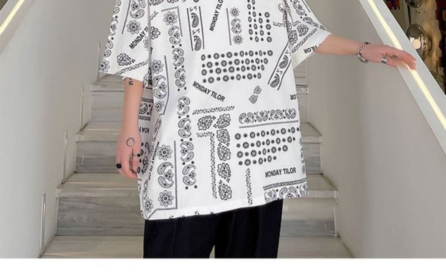 病みカッコイイ メンズファッション ストリートファッション ヒップホップ 個性的 裏原 サマースタンダードエスニックプリント柄Tシャツ シャツ ルーズ レトロ 夏物 ✝ おしゃれ メンズ 26124490891
