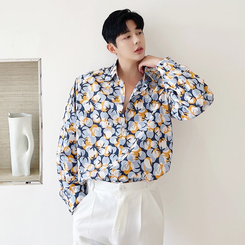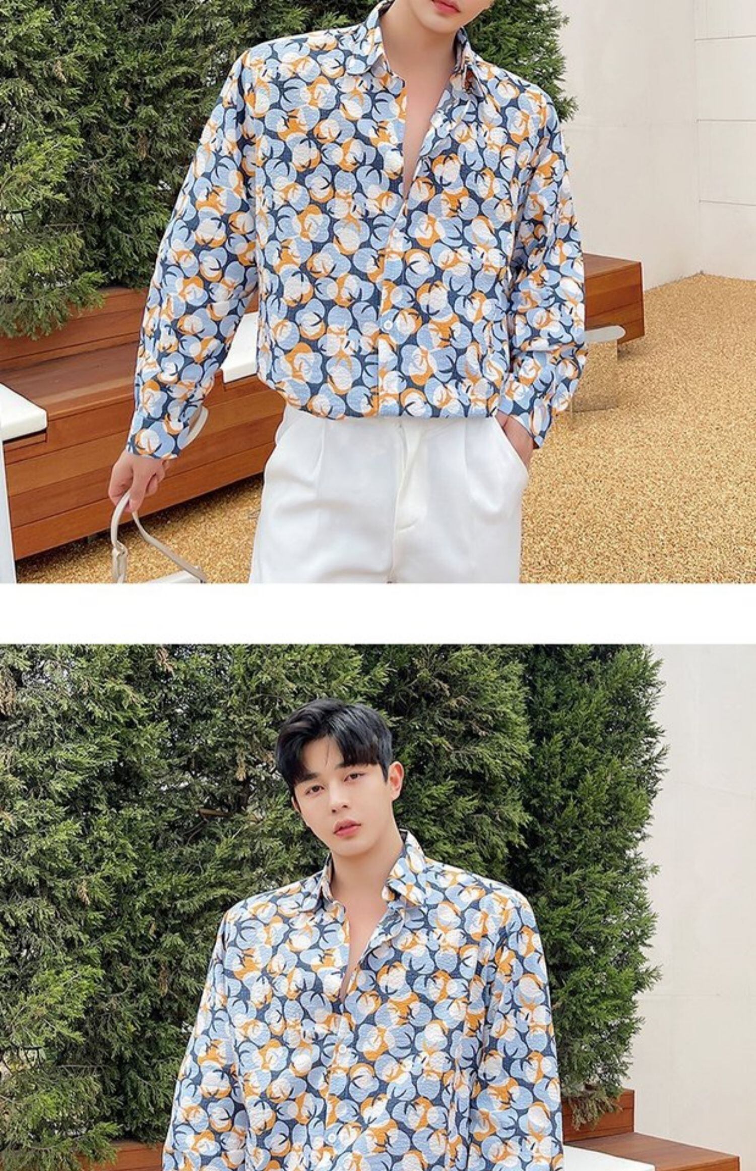 病みカッコイイ メンズファッション ストリートファッション ヒップホップ 個性的 裏原 スプリングサマープリントシャツ フローラル薄手トップス ロング 春物 夏物 花柄 ✝ おしゃれ メンズ 76521275553