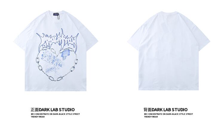 病みカッコイイ メンズファッション ストリートファッション ヒップホップ 個性的 裏原 ダークブラックプリントTシャツ シャツ ルーズ ストリート ヨーロピアン ✝ メンズファッション16085561478