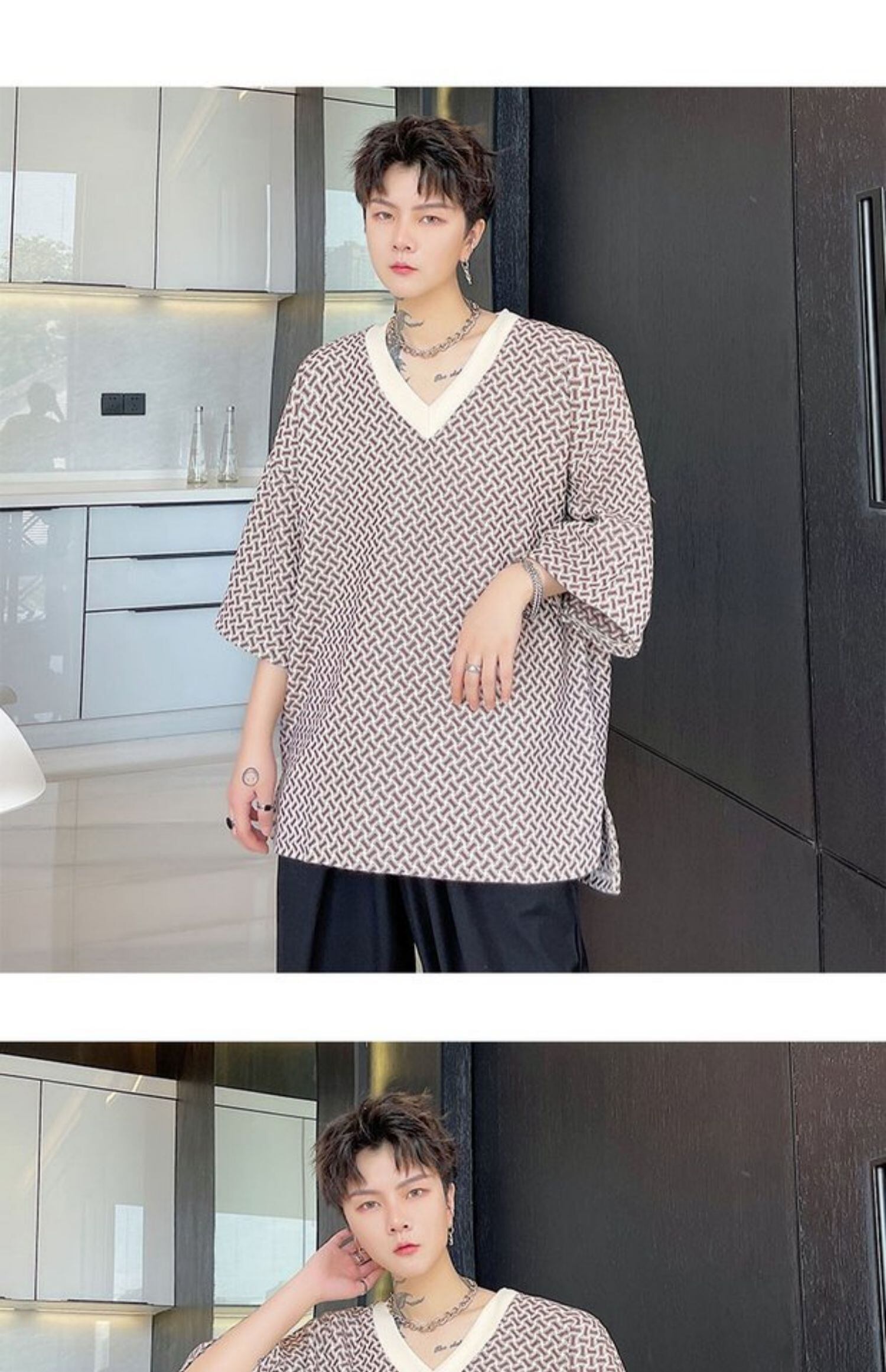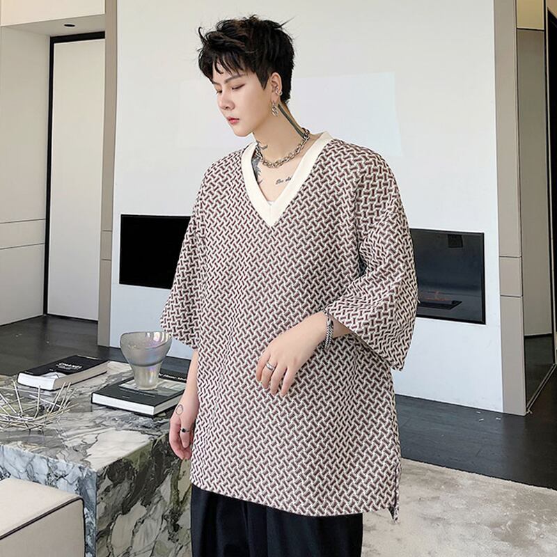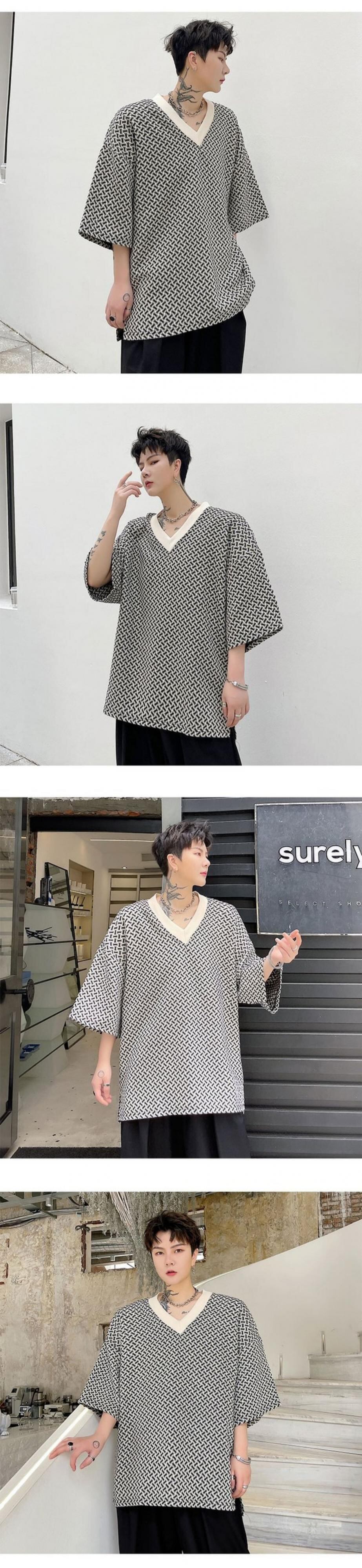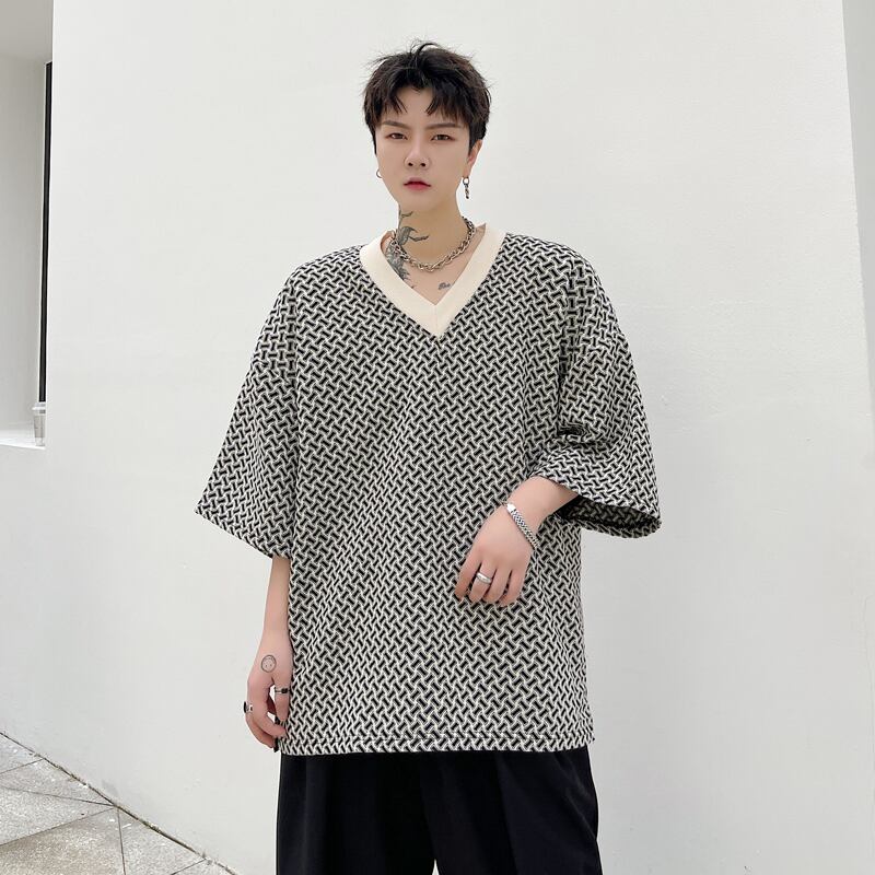 病みカッコイイ メンズファッション ストリートファッション ヒップホップ 個性的 裏原 サマーVネックTシャツ ルーズプリントトップス 夏物 ✝ おしゃれ メンズ 99749041248