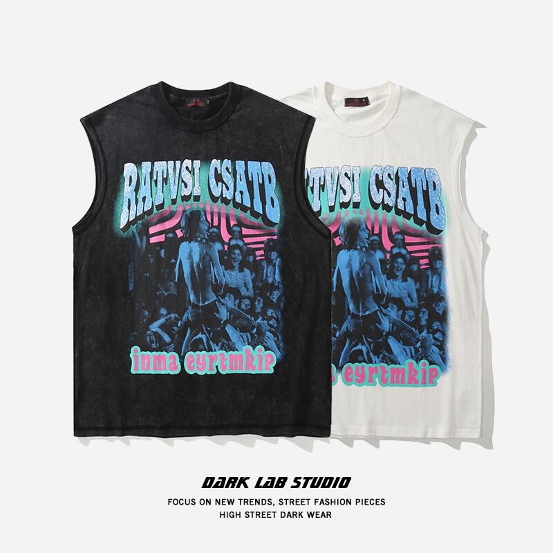 病みカッコイイ メンズファッション ストリートファッション ヒップホップ 個性的 裏原 ノースリーブTシャツ ルーズ ストリート ヨーロピアン ✝ メンズファッション94864450099