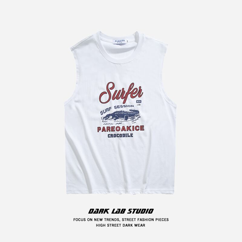 病みカッコイイ メンズファッション ストリートファッション ヒップホップ 個性的 裏原 スタンダードプリントラウンドネックノースリーブTシャツ ルーズカジュアル レトロ ストリート Oネック ✝ メンズファッション65939095014
