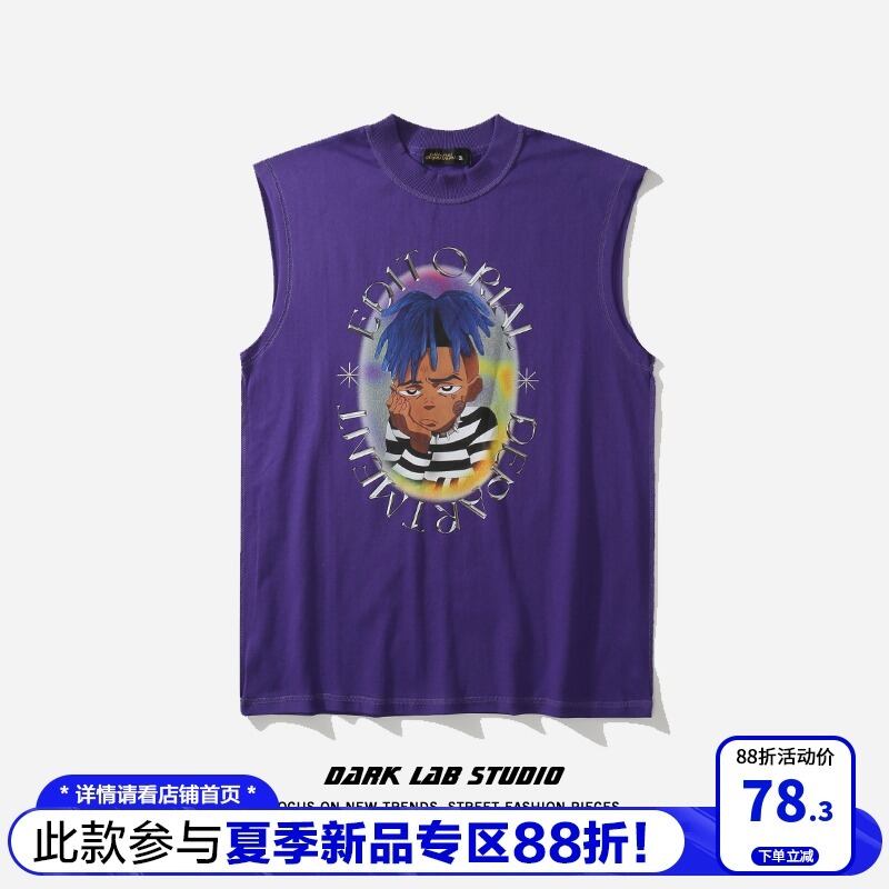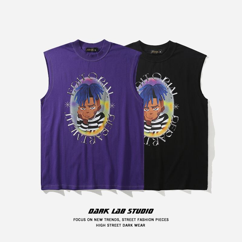 病みカッコイイ メンズファッション ストリートファッション ヒップホップ 個性的 裏原 プリントルーズノースリーブTシャツ コットン ストリート ヨーロピアン ✝ メンズファッション17969490470