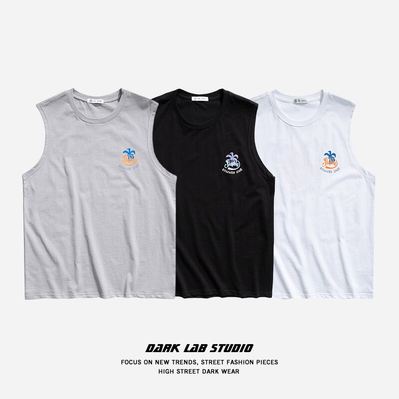 病みカッコイイ メンズファッション ストリートファッション ヒップホップ 個性的 裏原 サマープリントラウンドネックノースリーブルーズカジュアルTシャツ ストリート 夏物 Oネック ✝ メンズファッション254677759