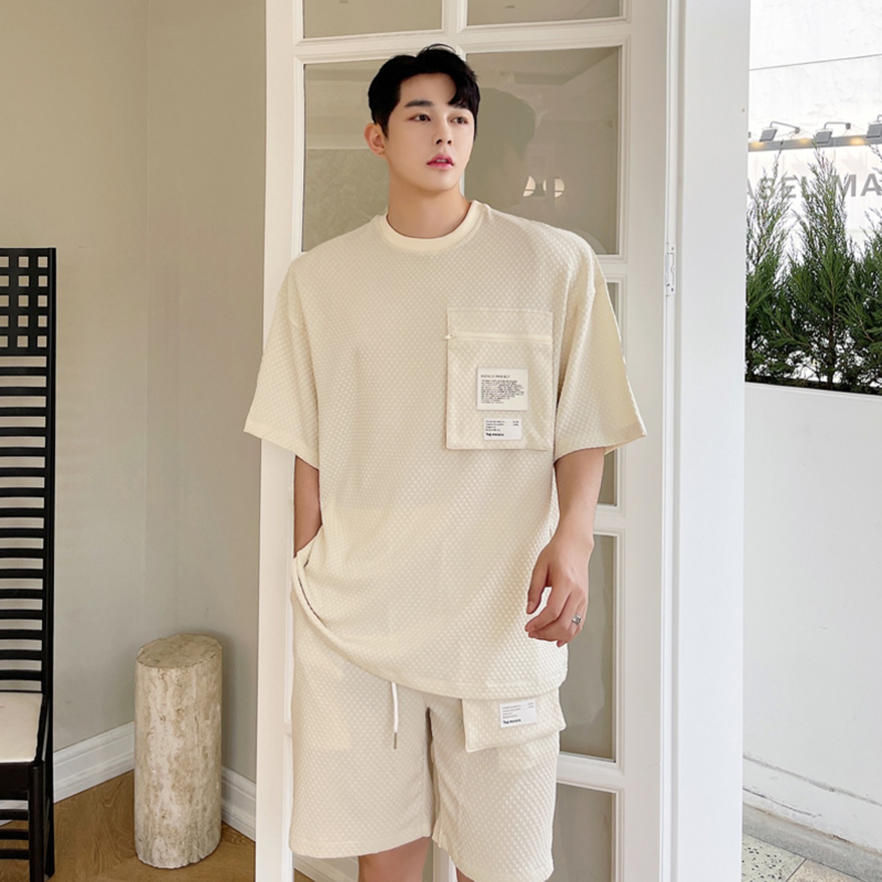 色:ブラックトップ,アプリコットトップ,黒のショートパンツ,アプリコットショーツ