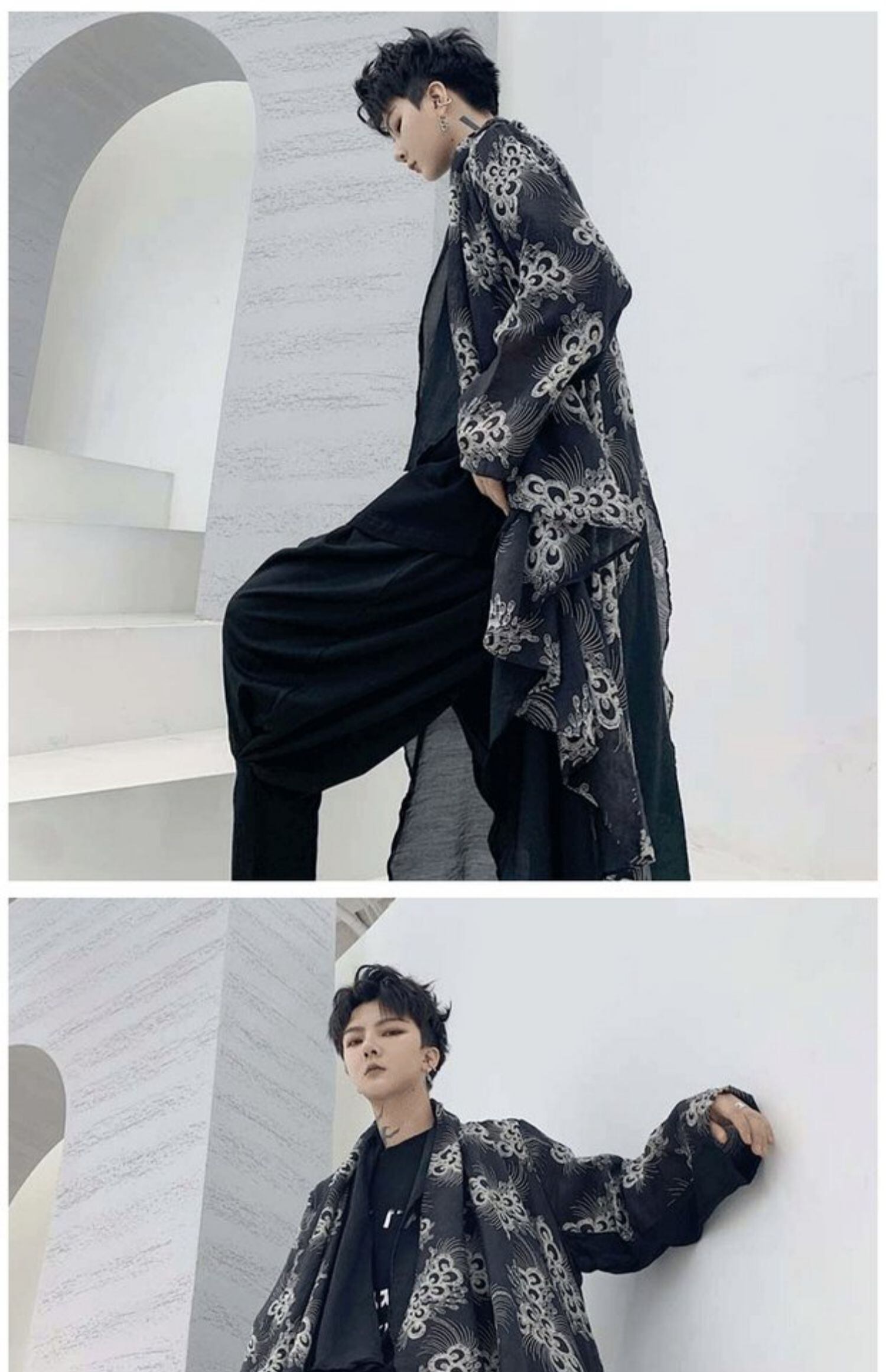 病みカッコイイ メンズファッション ストリートファッション ヒップホップ 個性的 裏原 サマーダークコート 薄手プリント ロング エレガント 夏物 ✝ おしゃれ メンズ 43072510893