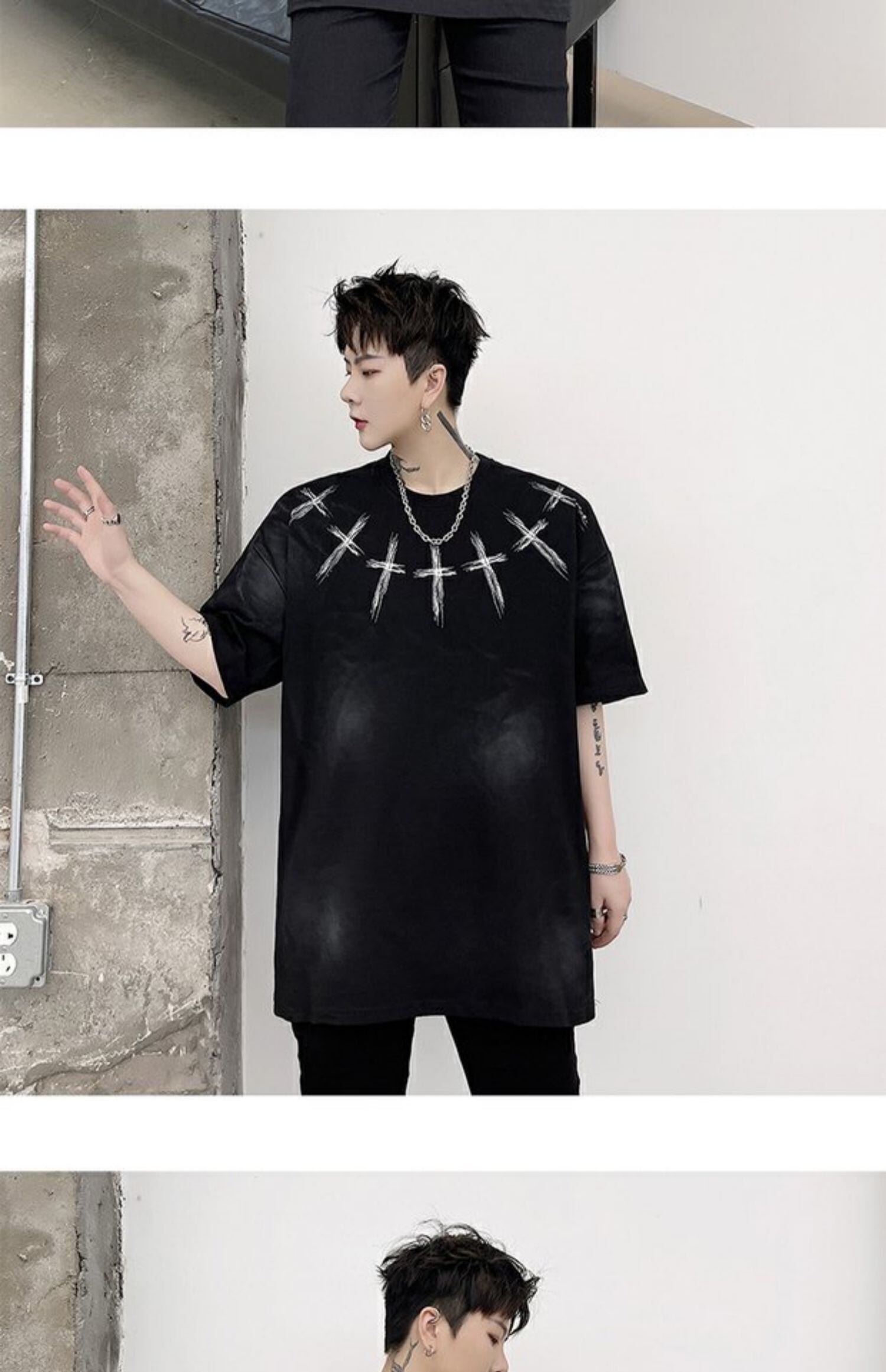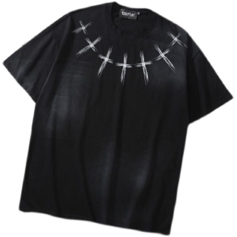 病みカッコイイ メンズファッション ストリートファッション ヒップホップ 個性的 裏原 サマーTシャツ シャツ ルーズダーク 夏物 ✝ おしゃれ メンズ 75953493149