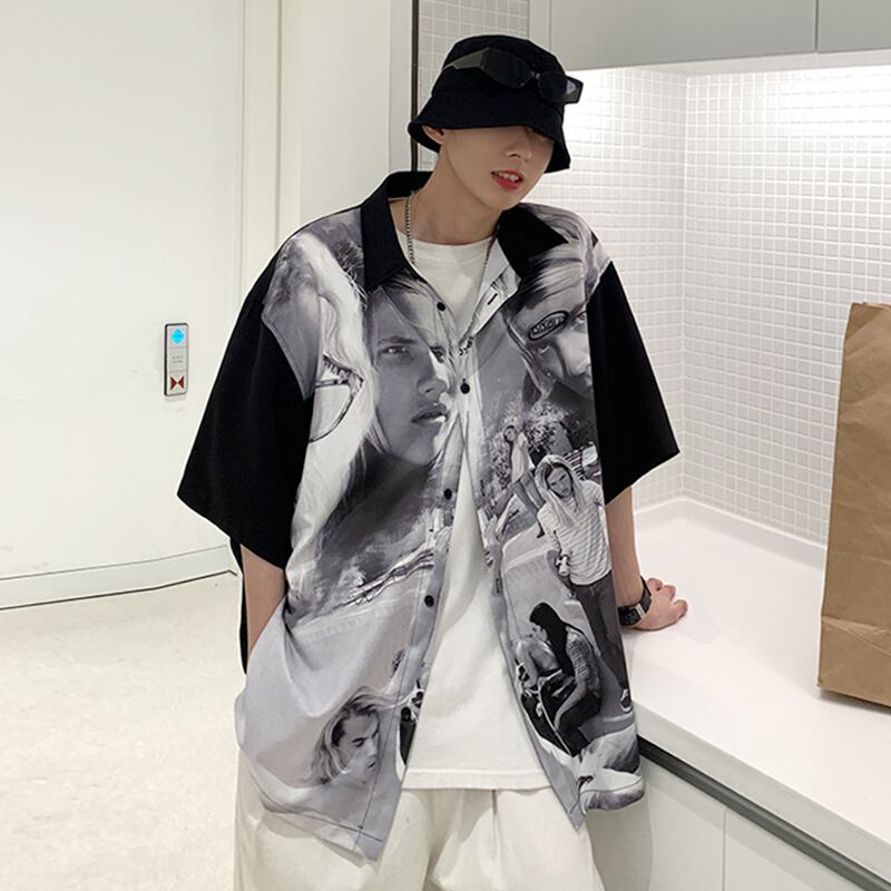 病みカッコイイ メンズファッション ストリートファッション ヒップホップ 個性的 裏原 サマープリントシャツ ルーズスタイル ストリート 夏物 ヨーロピアン ✝ おしゃれ メンズ 41548282317