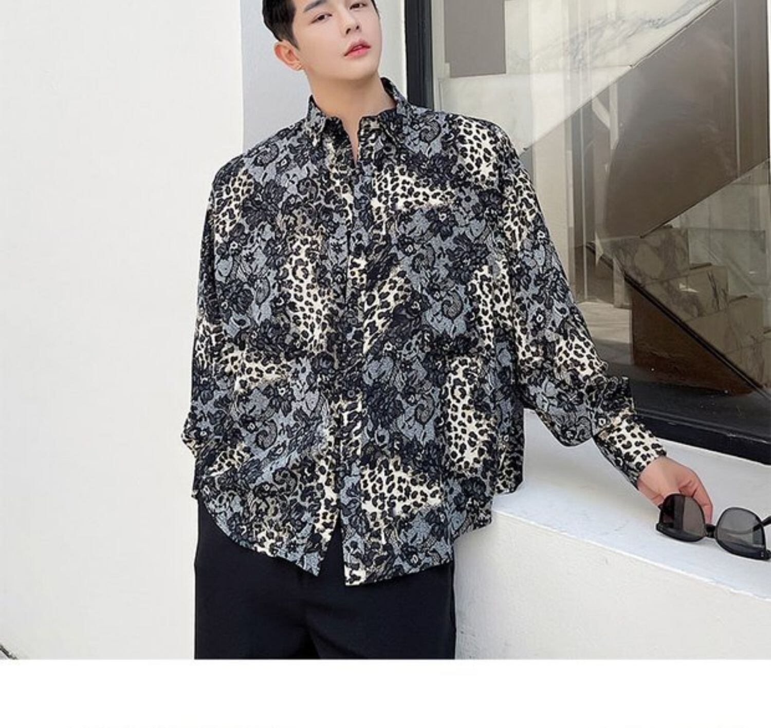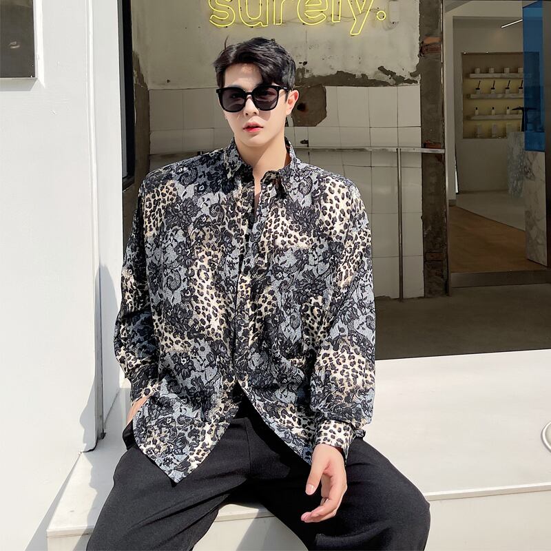 病みカッコイイ メンズファッション ストリートファッション ヒップホップ 個性的 裏原 スプリングサマーレオパードシャツ ルーズ薄手シフォンレッドトップス ロング ストリート 春物 夏物 ✝ おしゃれ メンズ 47781327810