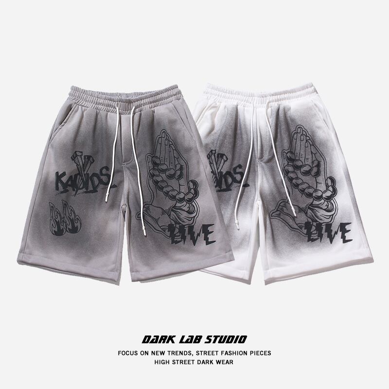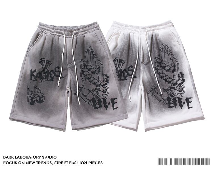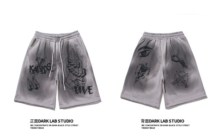 病みカッコイイ メンズファッション ストリートファッション ヒップホップ 個性的 裏原 プリントカジュアルパンツ スタンダードルーズショーツ レトロ ブルマー ヨーロピアン ✝ メンズファッション38477360846