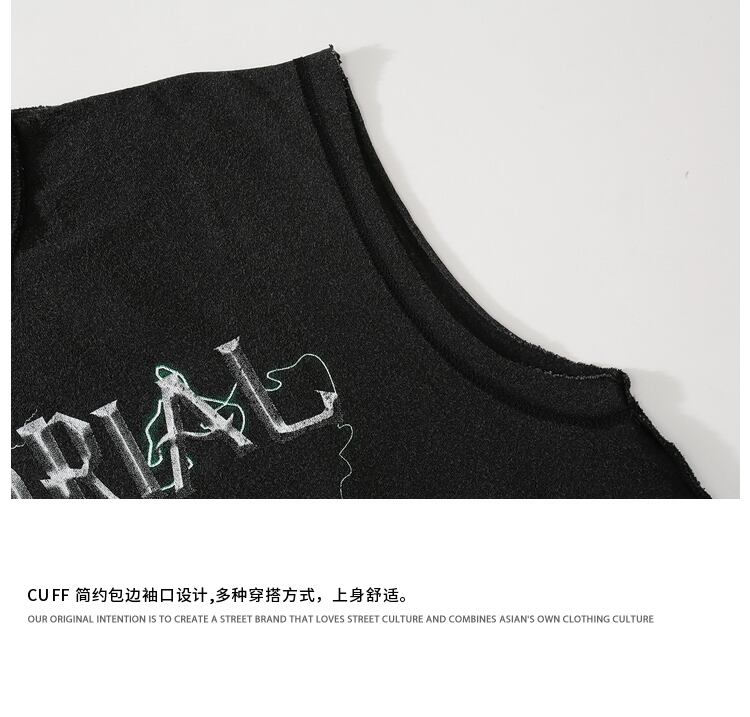 病みカッコイイ メンズファッション ストリートファッション ヒップホップ 個性的 裏原 スタンダードレディースプリントルーズノースリーブTシャツ レトロ ストリート ヨーロピアン ✝ メンズファッション12186556151