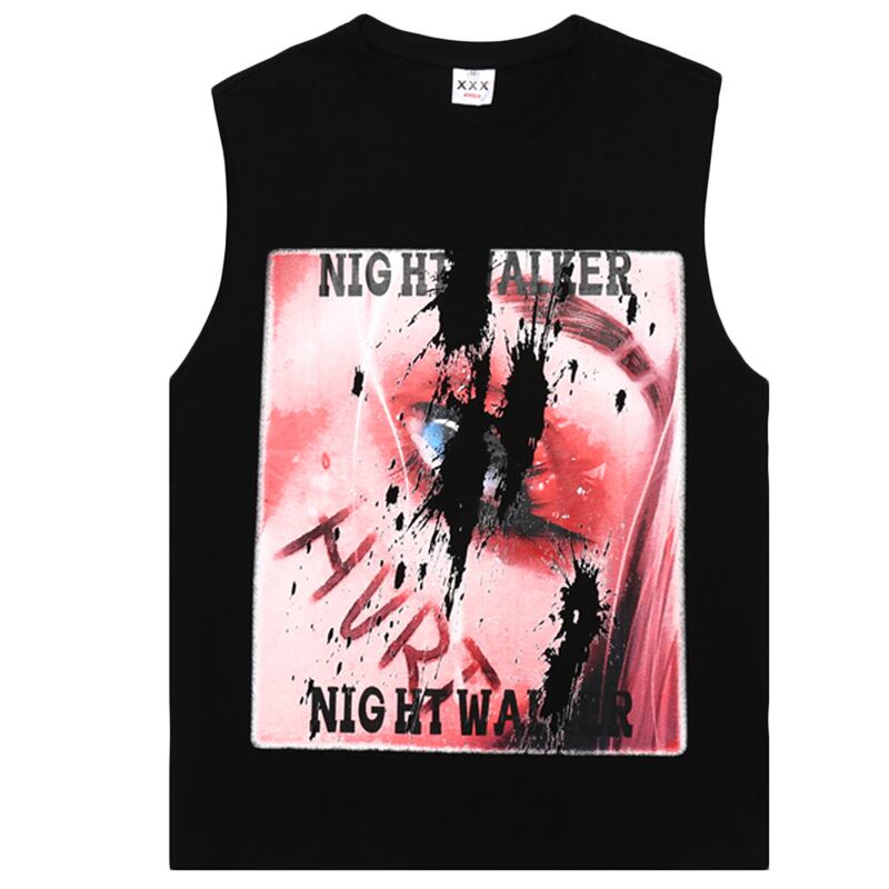 病みカッコイイ メンズファッション ストリートファッション ヒップホップ 個性的 裏原 スタンダードプリントノースリーブTシャツ ルーズカジュアルダーク レトロ ヨーロピアン ✝ メンズファッション74948449842