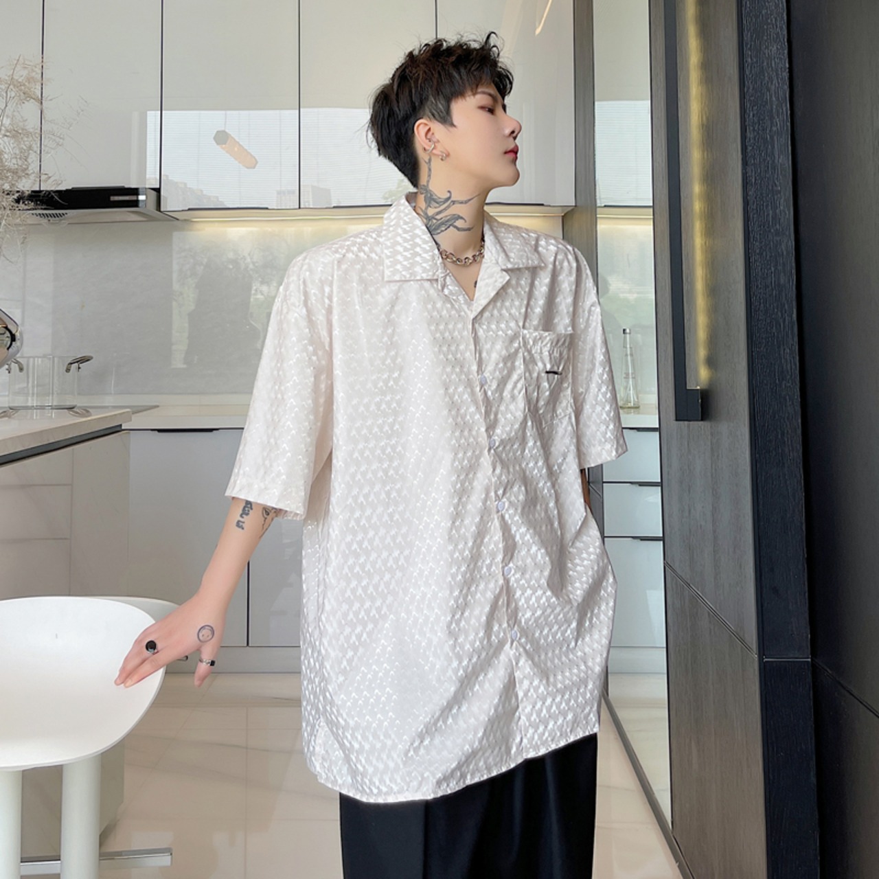病みカッコイイ メンズファッション ストリートファッション ヒップホップ 個性的 裏原 サマーパターンシャツ ルーズレッド 夏物 ✝ おしゃれ メンズ 83032242935
