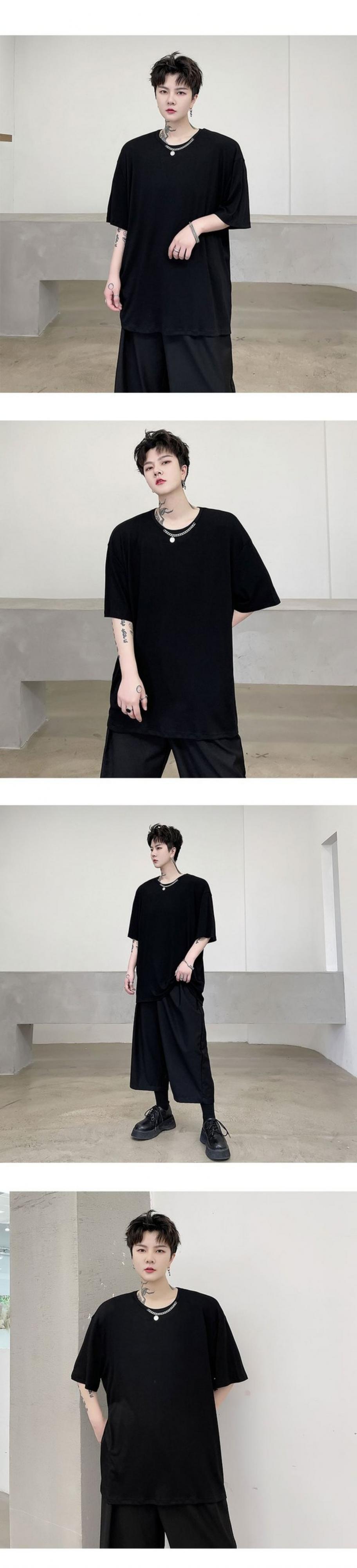 病みカッコイイ メンズファッション ストリートファッション ヒップホップ 個性的 裏原 サマーソリッド カラーチェーン Tシャツ トップス ブラウス 夏物 ソリッドカラー ✝ おしゃれ メンズ 75647878520