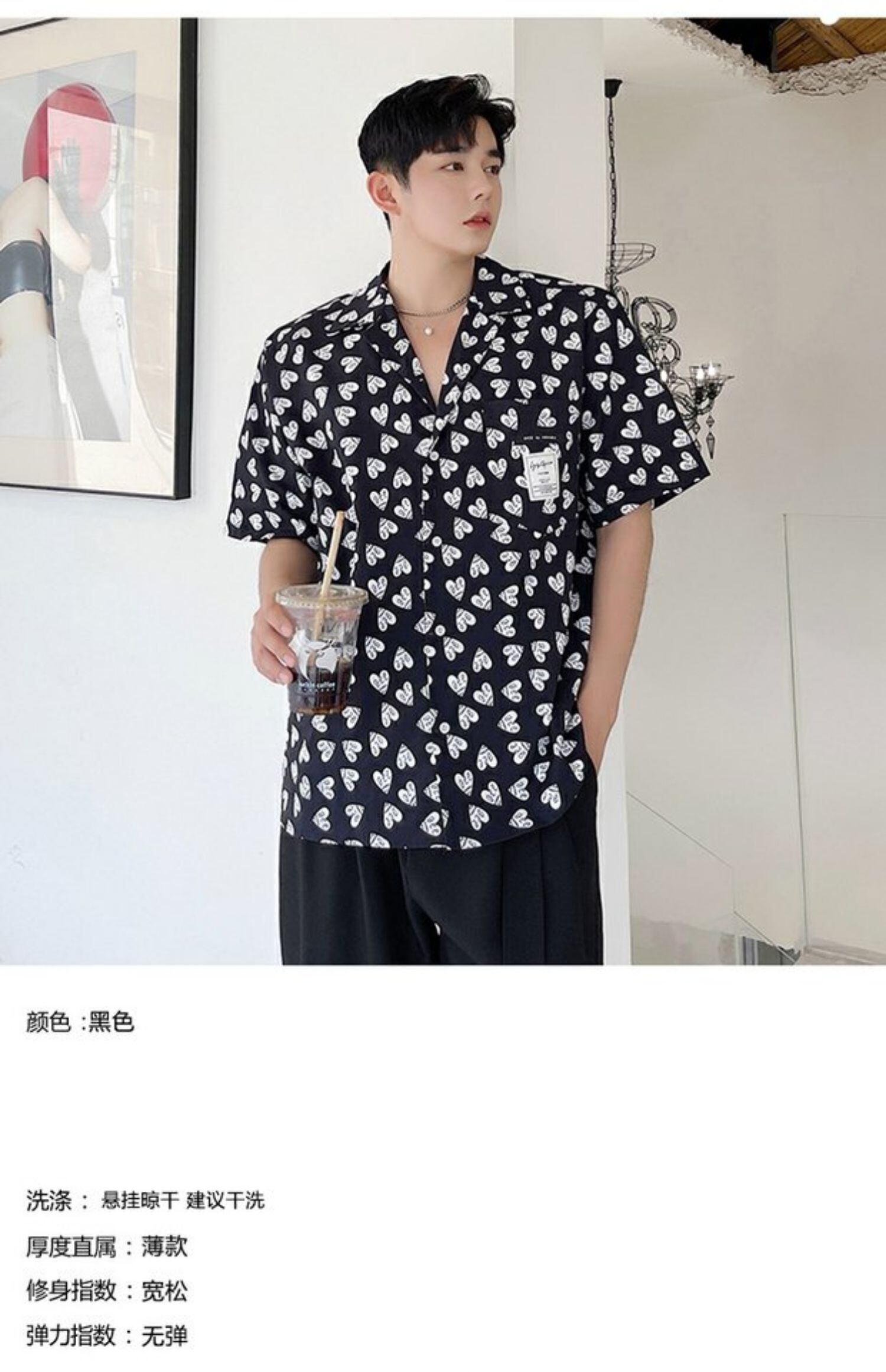 病みカッコイイ メンズファッション ストリートファッション ヒップホップ 個性的 裏原 サマーシャツ ルーズレッドプリント ストリート 夏物 ✝ おしゃれ メンズ 46019187660