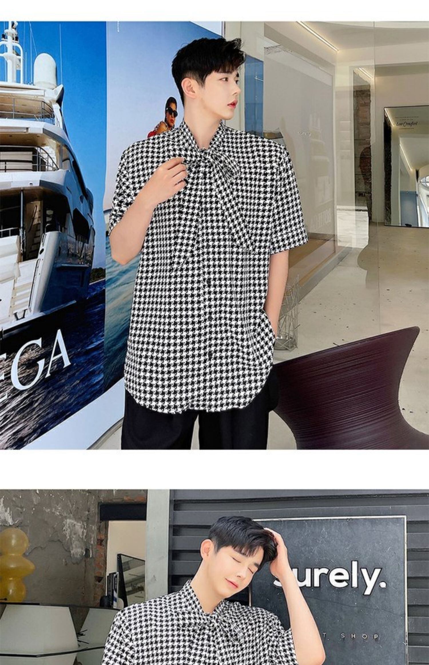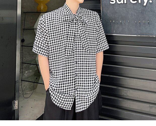 病みカッコイイ メンズファッション ストリートファッション ヒップホップ 個性的 裏原 サマー格子柄シャツ リボントップス 夏物 ドレス ✝ おしゃれ メンズ 59246586169