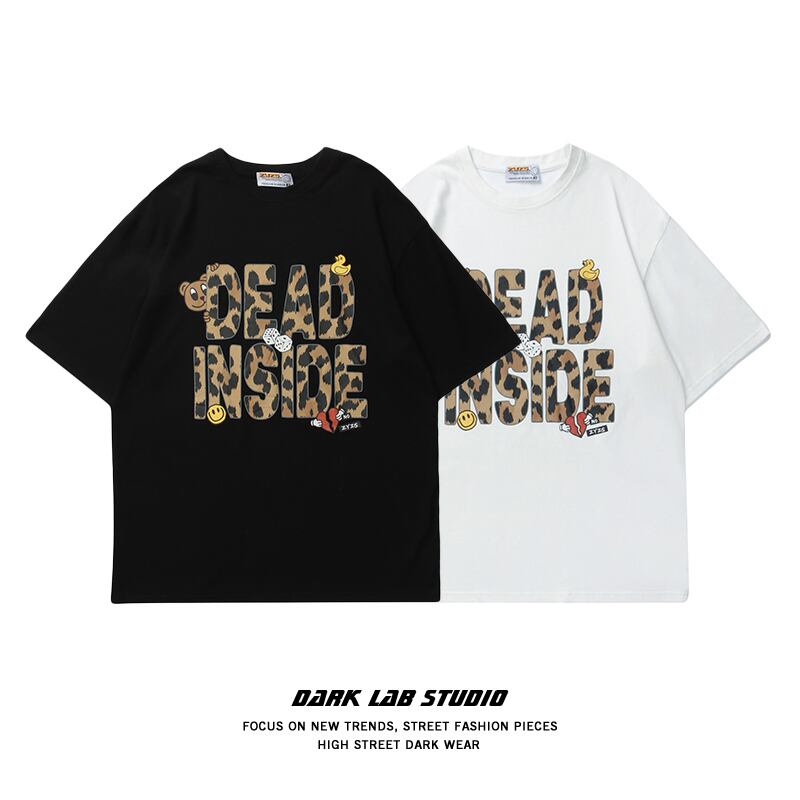 病みカッコイイ メンズファッション ストリートファッション ヒップホップ 個性的 裏原 レオパードプリント柄プリントTシャツ ルーズ コットン ストリート ヨーロピアン ✝ メンズファッション99871009880