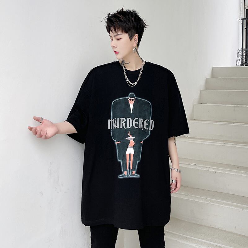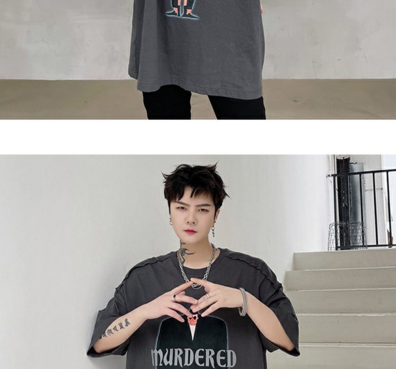 病みカッコイイ メンズファッション ストリートファッション ヒップホップ 個性的 裏原 サマープリントTシャツ スリーブルーズスタイルトップス 夏物 ✝ おしゃれ メンズ 18753792685