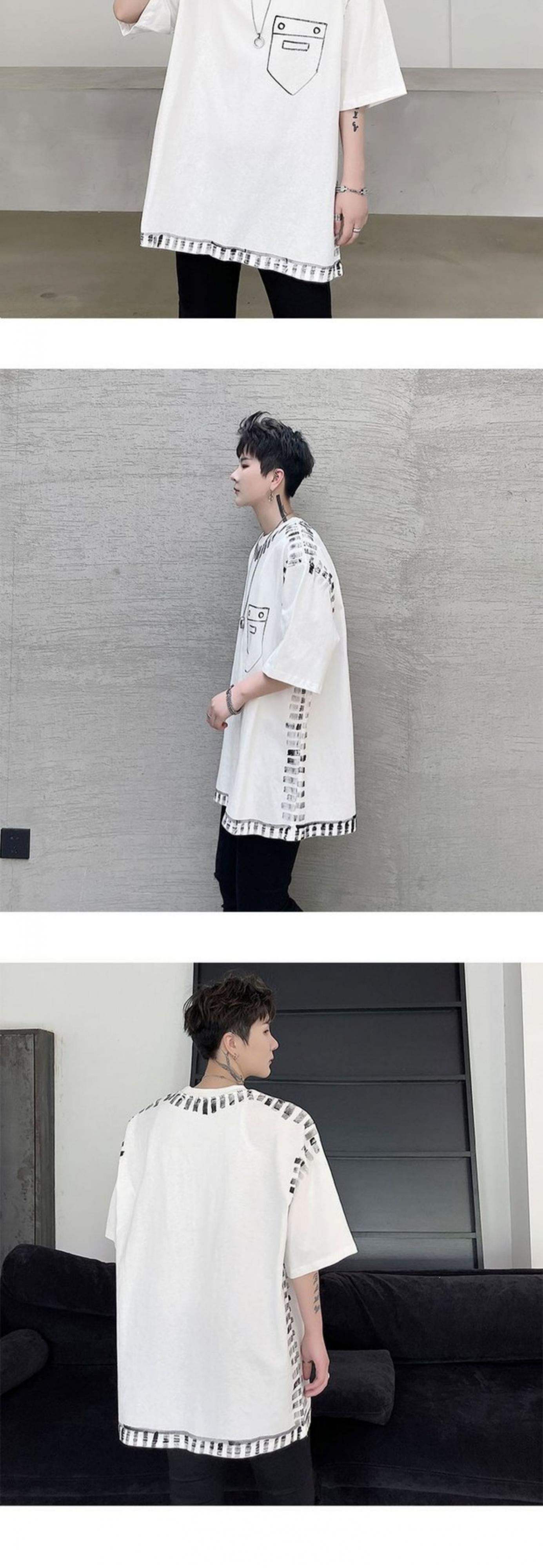 病みカッコイイ メンズファッション ストリートファッション ヒップホップ 個性的 裏原 サマープリントTシャツ シャツ ルーズダークレッド 夏物 ✝ おしゃれ メンズ 44595351364