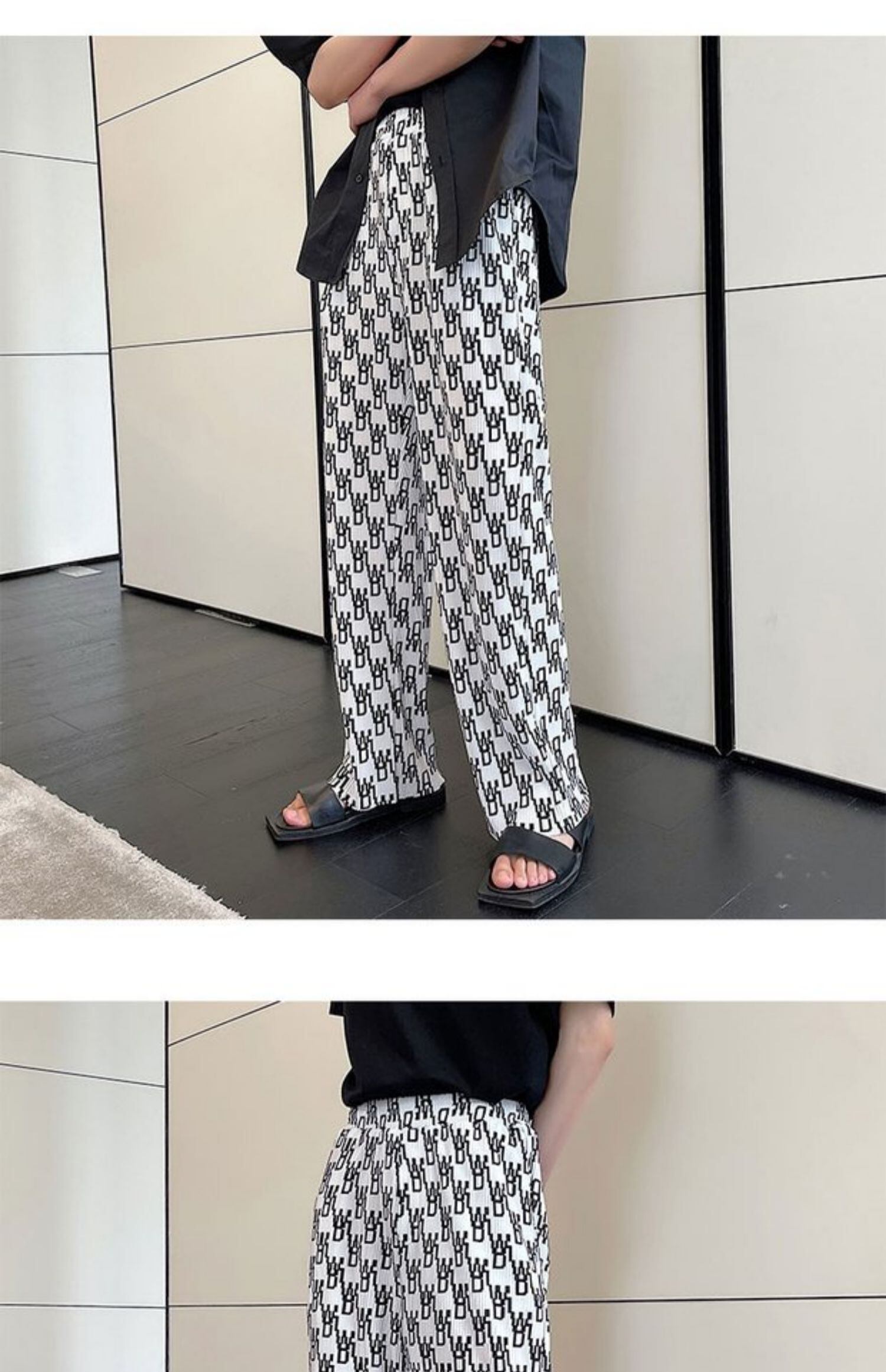 病みカッコイイ メンズファッション ストリートファッション ヒップホップ 個性的 裏原 プリントカジュアルパンツ ルーズハイウェストウェスト薄手プリーツスプリングサマーロング 春物 夏物 ✝ おしゃれ メンズ 42404372711