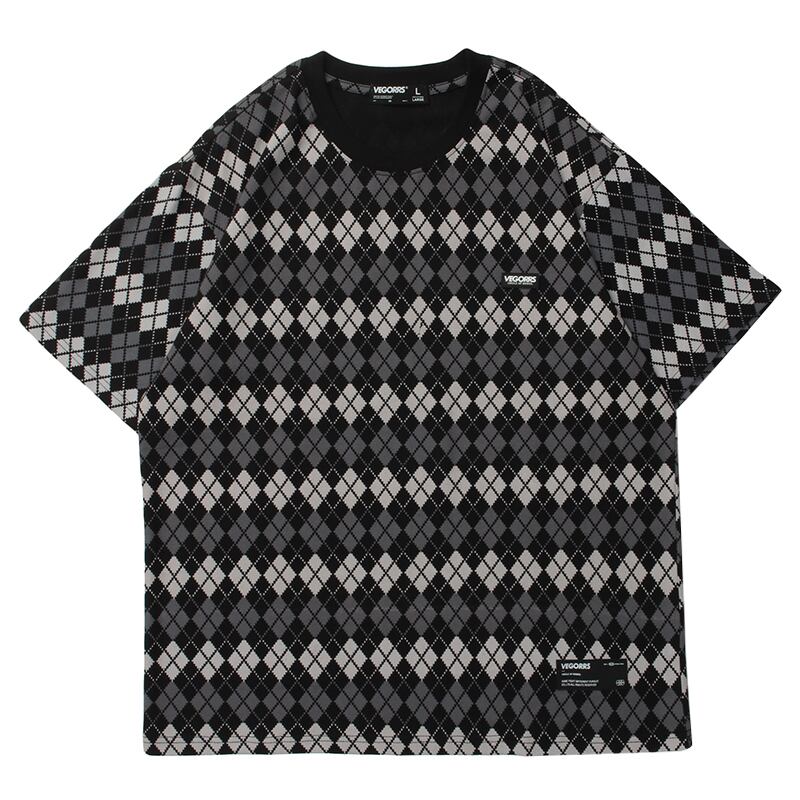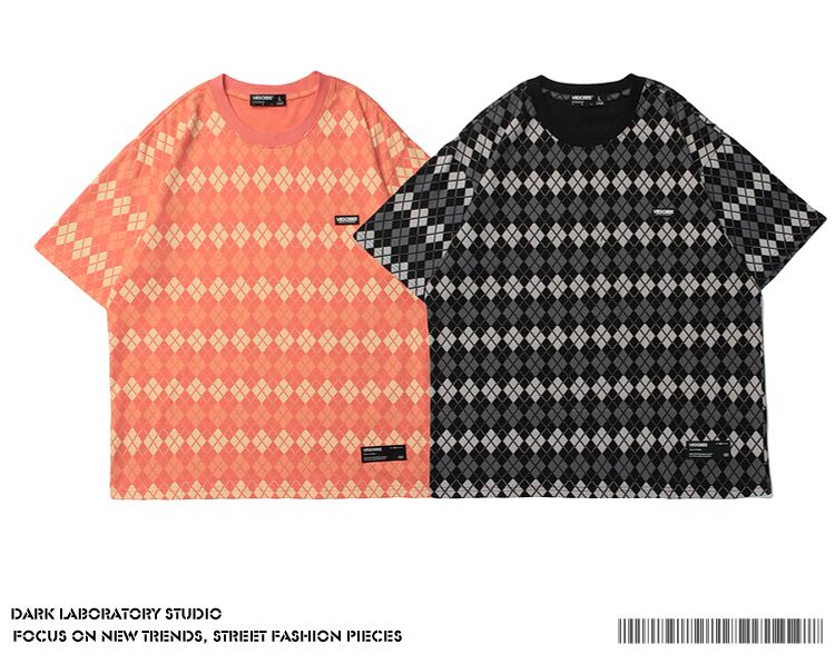 病みカッコイイ メンズファッション ストリートファッション ヒップホップ 個性的 裏原 サマースタンダード格子柄ラウンドネックTシャツ カジュアルトップス レトロ ストリート 夏物 Oネック ✝ メンズファッション63185166462