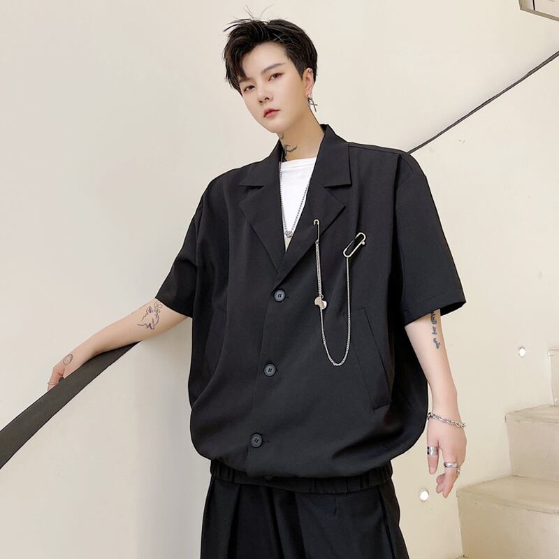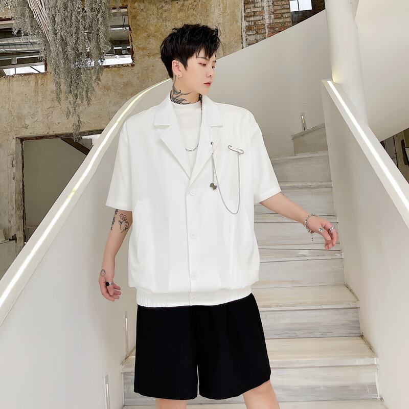 病みカッコイイ メンズファッション ストリートファッション ヒップホップ 個性的 裏原 サマーチェーン ルーズジャケット 夏物 ✝ おしゃれ メンズ 73133275063