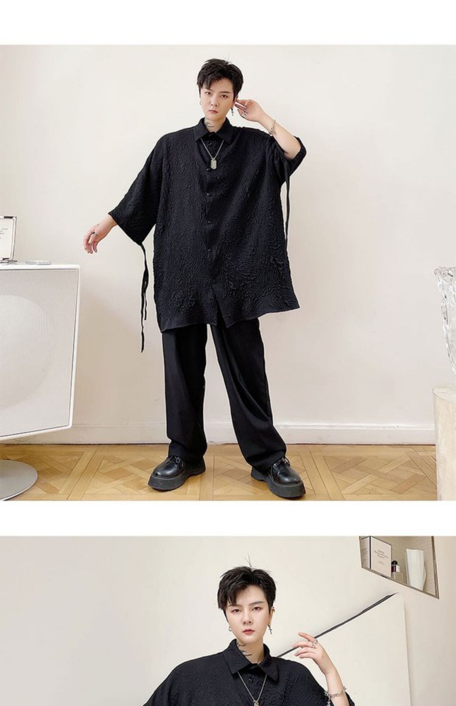 病みカッコイイ メンズファッション ストリートファッション ヒップホップ 個性的 裏原 サマーダークシャツ ルーズ 夏物 ✝ おしゃれ メンズ 16619909351