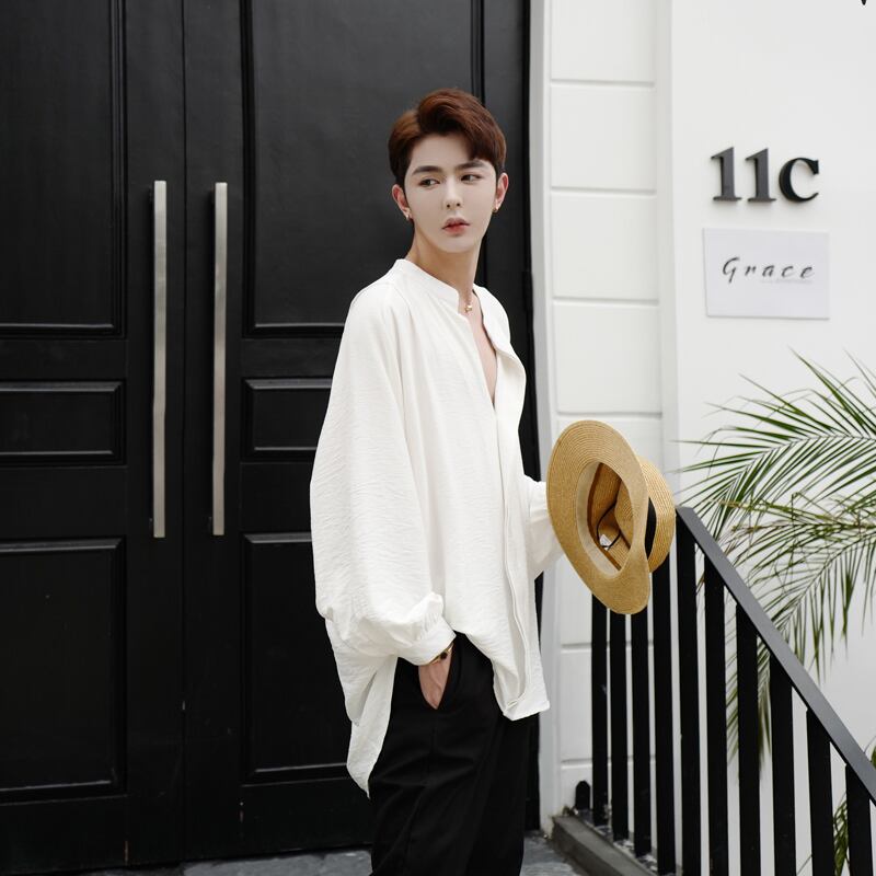 病みカッコイイ メンズファッション ストリートファッション ヒップホップ 個性的 裏原 スプリングソリッド カラーシャツ ルーズカジュアルプルオーバー ロング 春物 ソリッドカラー ✝ おしゃれ メンズ 43340314631