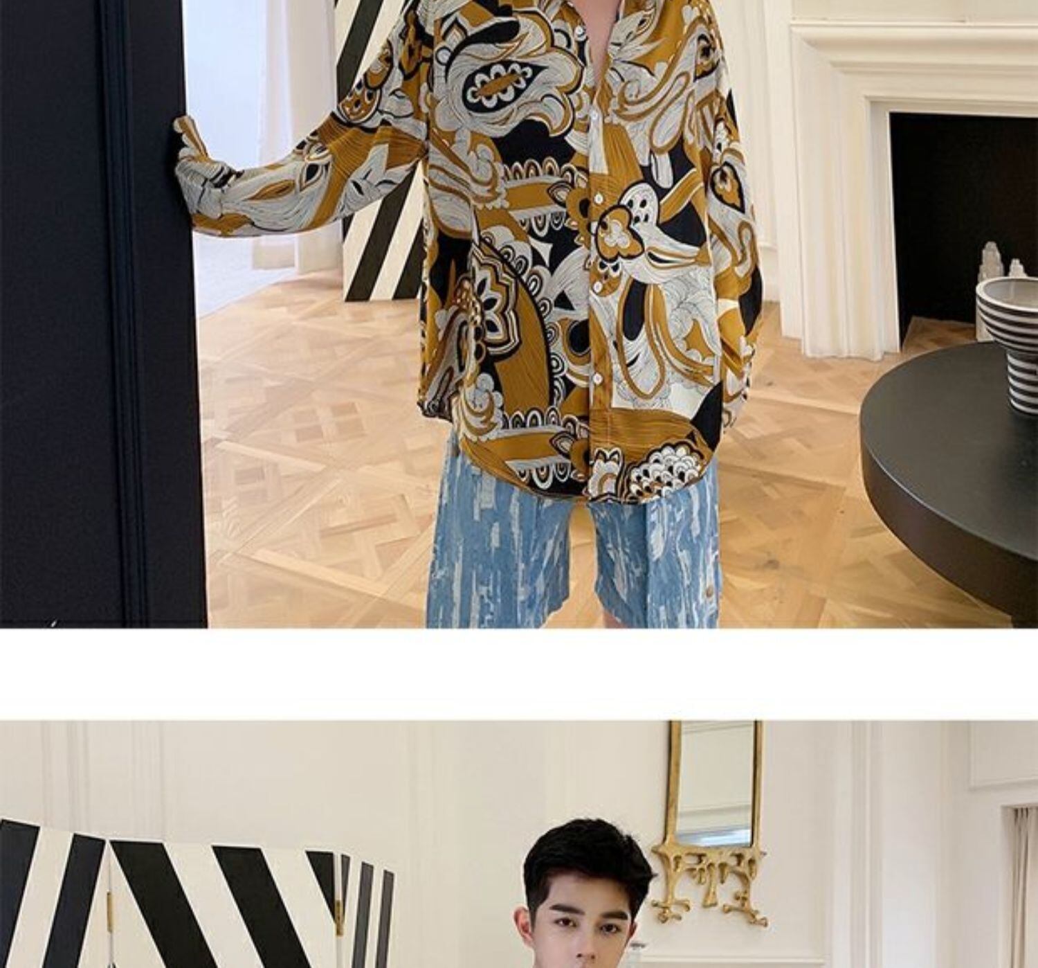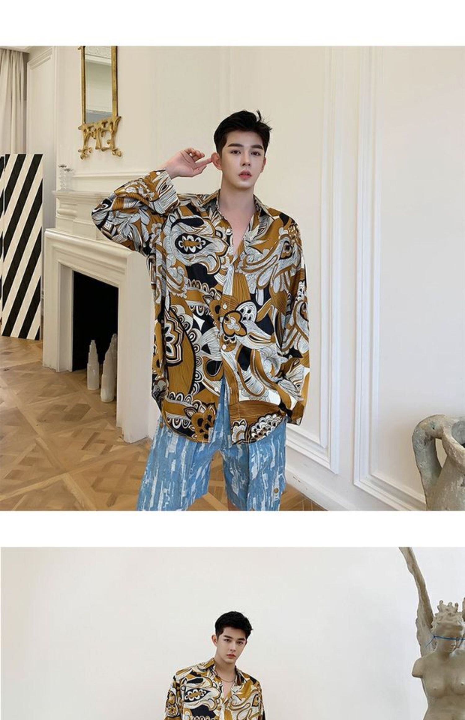 病みカッコイイ メンズファッション ストリートファッション ヒップホップ 個性的 裏原 シャツ スタンダードプリントルーズ薄手スタイル レトロ シルク ✝ おしゃれ メンズ 95015178770