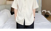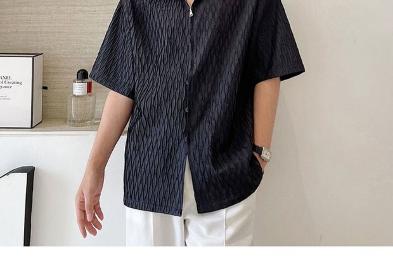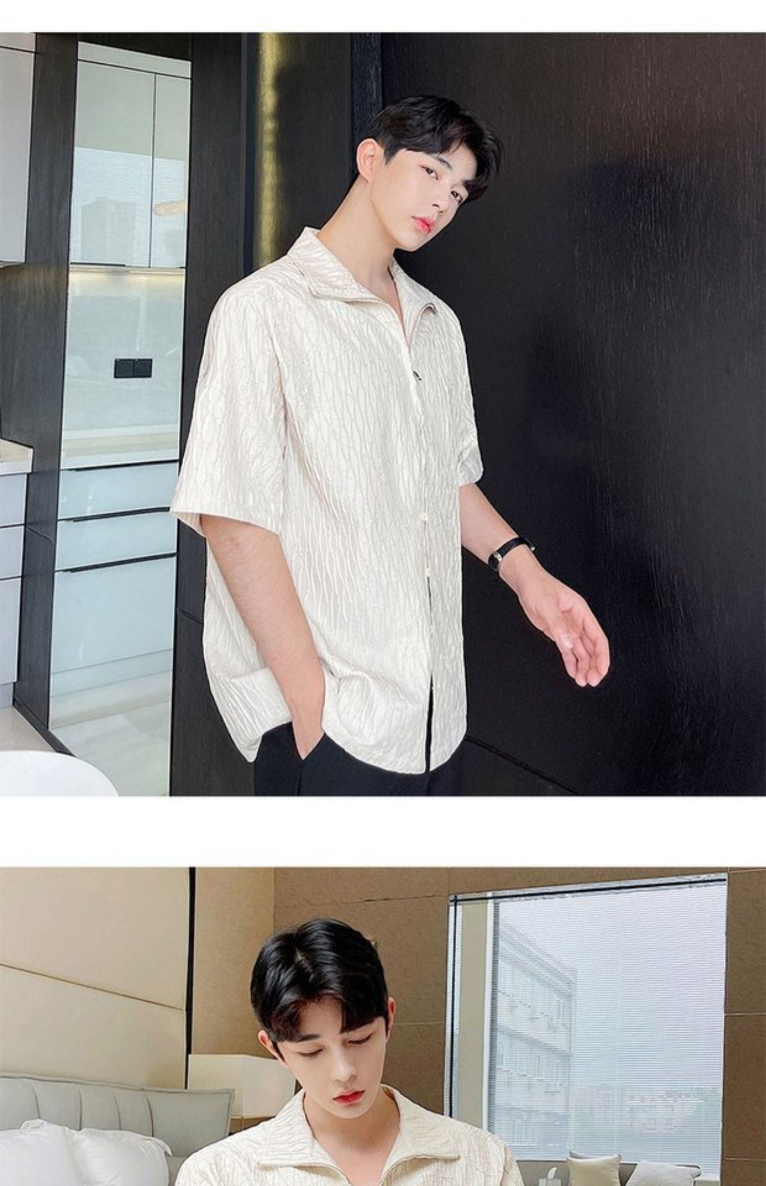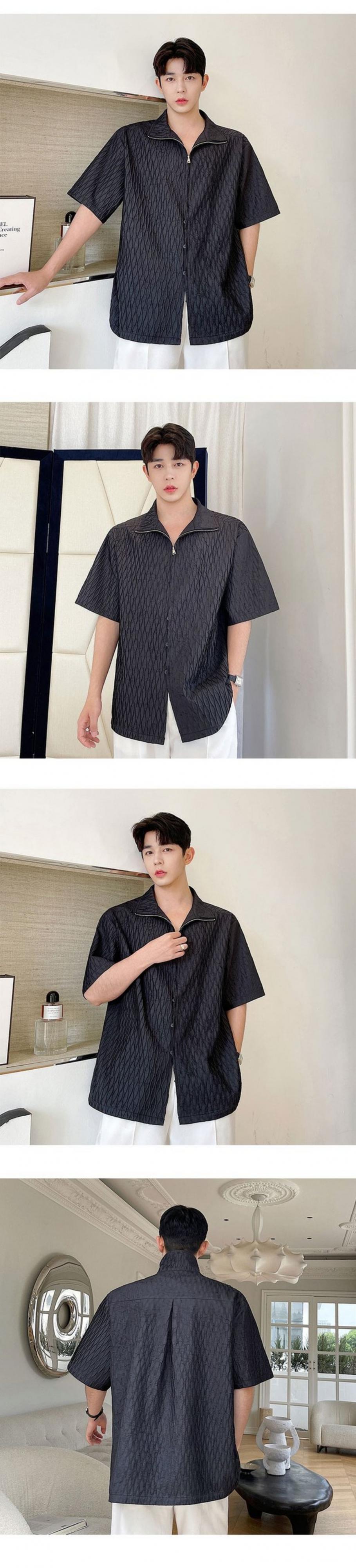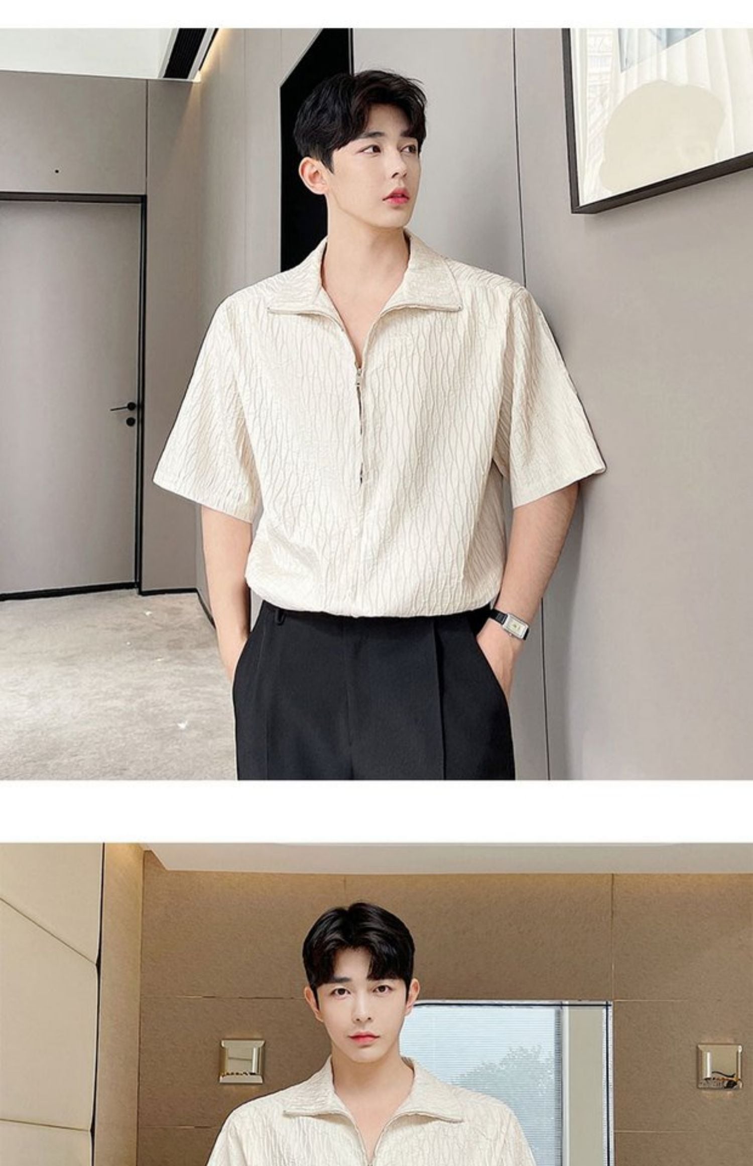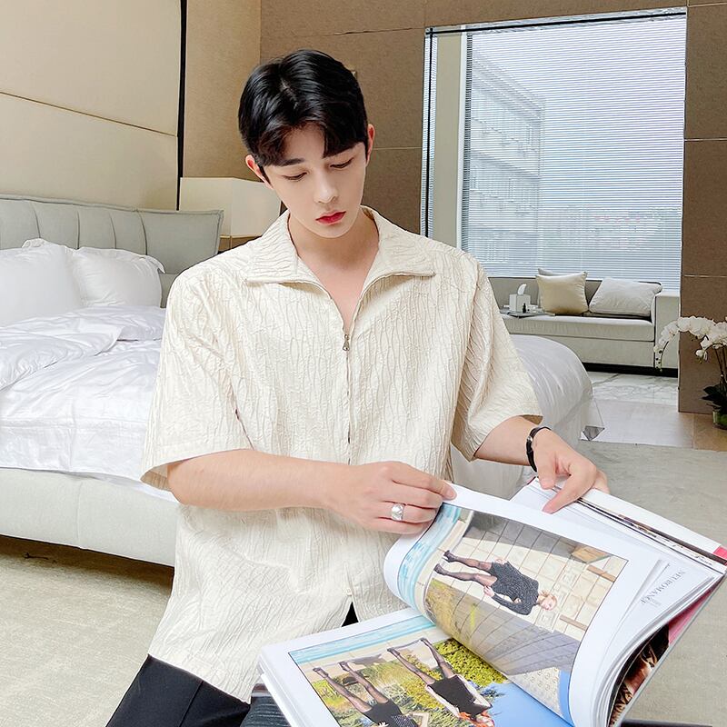 病みカッコイイ メンズファッション ストリートファッション ヒップホップ 個性的 裏原 サマージッパーカラーソリッド シャツ ルーズ 夏物 ソリッドカラー ✝ おしゃれ メンズ 77100865473