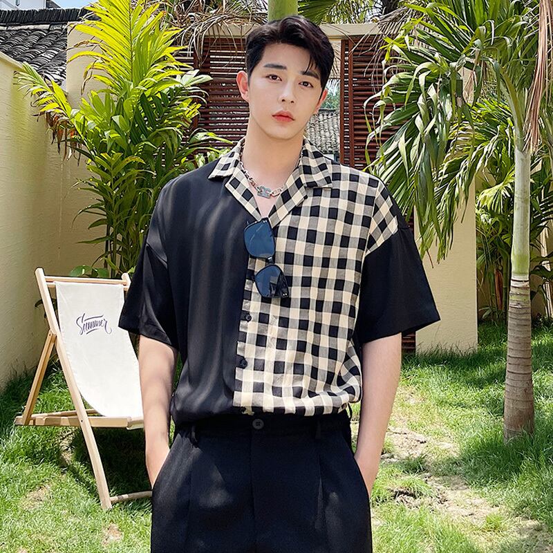 病みカッコイイ メンズファッション ストリートファッション ヒップホップ 個性的 裏原 サマーシャツ スタンダード格子柄レッド レトロ 夏物 ✝ おしゃれ メンズ 25766918640