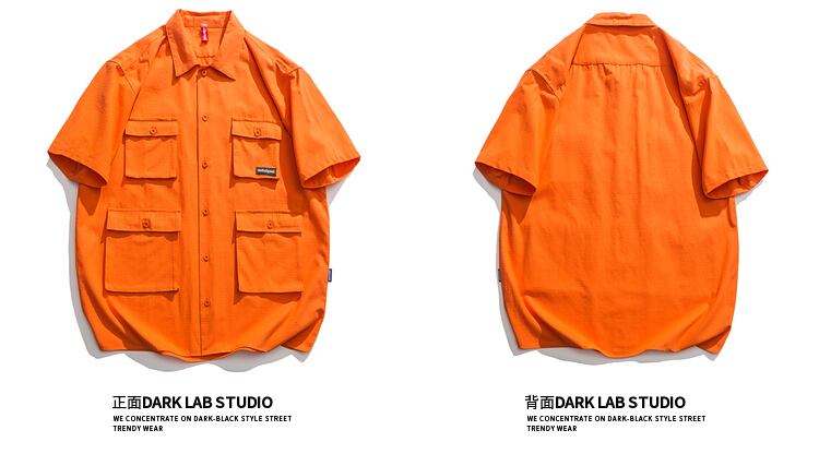病みカッコイイ メンズファッション ストリートファッション ヒップホップ 個性的 裏原 スタンダードソリッド カラーシャツ ルーズカジュアル レトロ ストリート ソリッドカラー ポケット多め マルチポケット ✝ メンズファッション6856379092