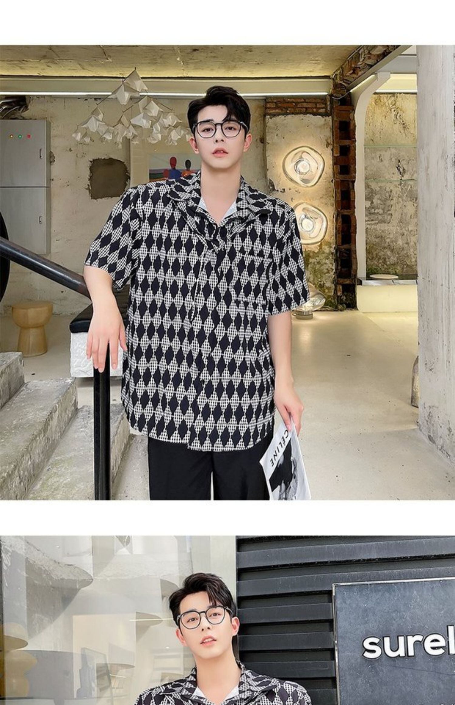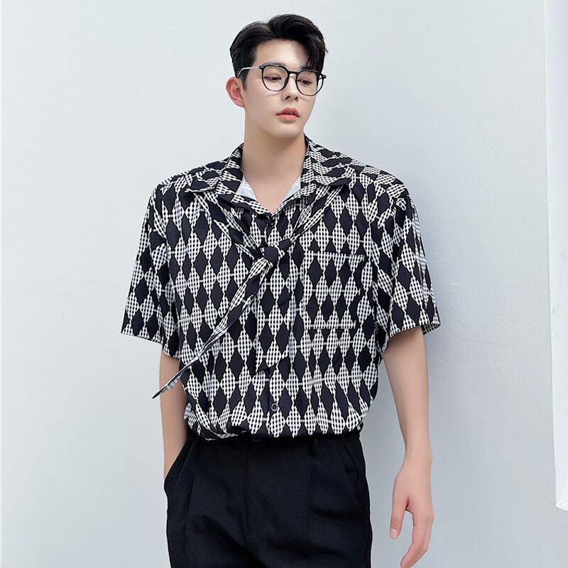 病みカッコイイ メンズファッション ストリートファッション ヒップホップ 個性的 裏原 サマープリント柄シャツ ルーズレッドリボン 夏物 ✝ おしゃれ メンズ 65939382713