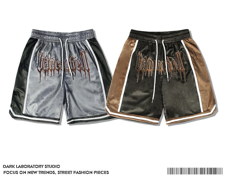 病みカッコイイ メンズファッション ストリートファッション ヒップホップ 個性的 裏原 スタンダード刺繍ベルベットカラーカジュアルショーツ サマールーズパンツ レトロ ストリート 夏物 ブルマー ✝ メンズファッション6781188514