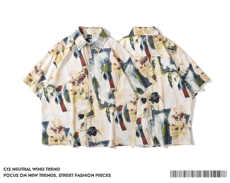 病みカッコイイ メンズファッション ストリートファッション ヒップホップ 個性的 裏原 スタイルスタンダードプリント柄シャツ ルーズカジュアル レトロ ストリート かわいい ✝ メンズファッション23253541533