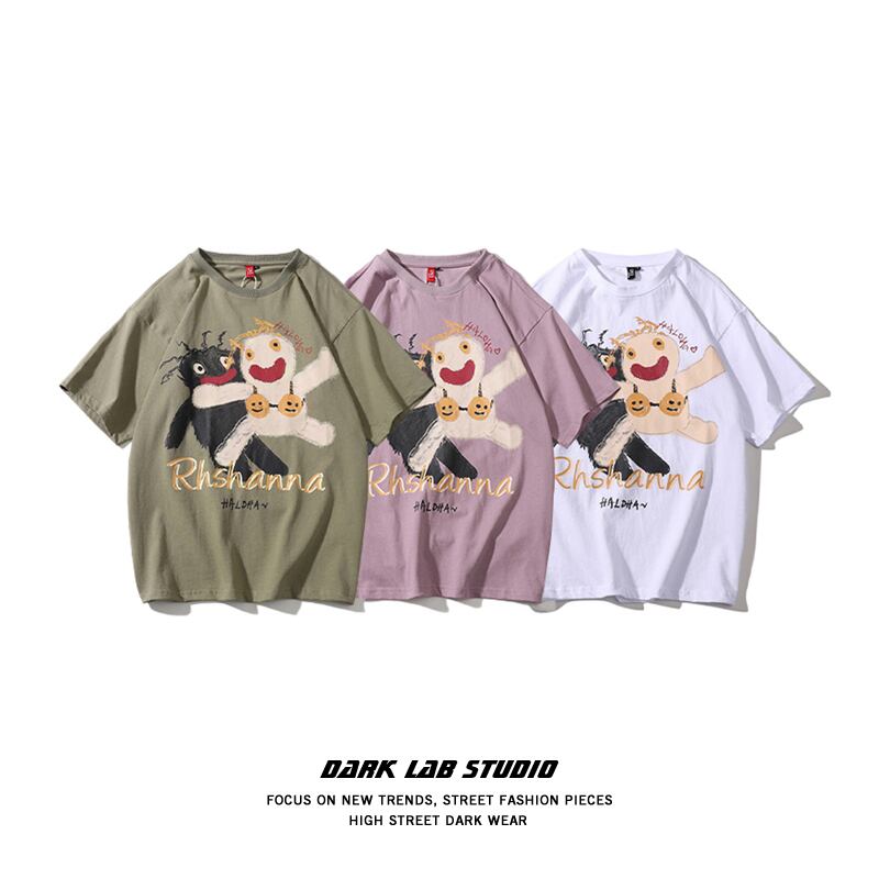 病みカッコイイ メンズファッション ストリートファッション ヒップホップ 個性的 裏原 サマースタンダードTシャツ ルーズカジュアルラウンドネック コットン レトロ 夏物 Oネック ✝ メンズファッション63510991972