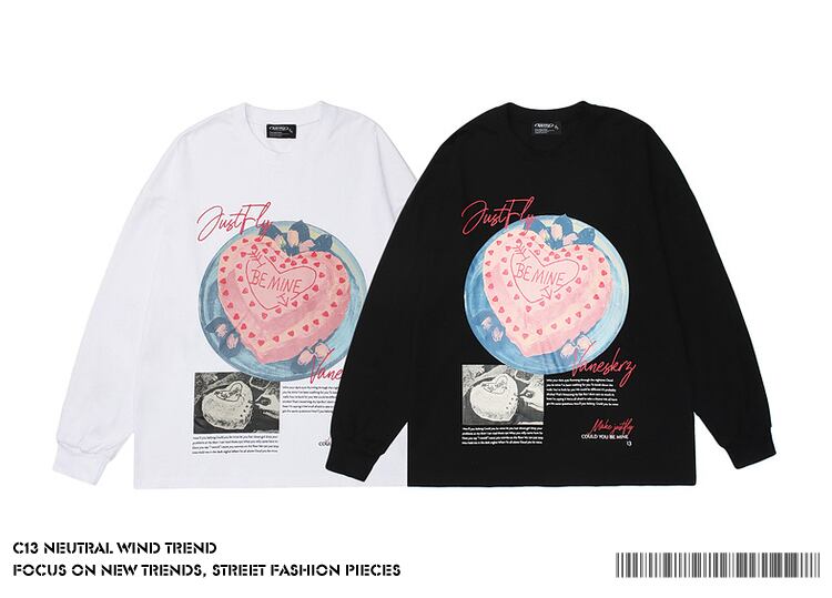 病みカッコイイ メンズファッション ストリートファッション ヒップホップ 個性的 裏原 オータムスタイルハートプリントラウンドネックトップス レディースルーズカジュアルセーター ロング かわいい 秋物 Oネック ✝ メンズファッション81833551171