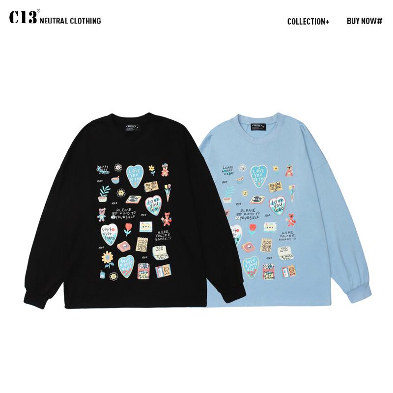 病みカッコイイ メンズファッション ストリートファッション ヒップホップ 個性的 裏原 オータムスタイルプリントセーター レディースルーズロング 長袖 かわいい 秋物 ✝ メンズファッション43322138207