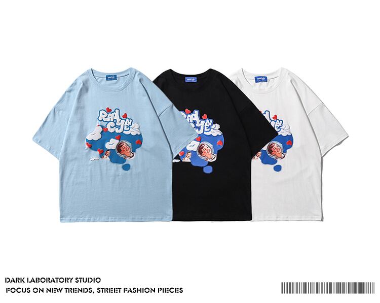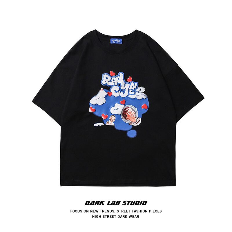 病みカッコイイ メンズファッション ストリートファッション ヒップホップ 個性的 裏原 サマープリントTシャツ ルーズカジュアルラウンドネック コットン ストリート 夏物 Oネック ✝ メンズファッション75844745755
