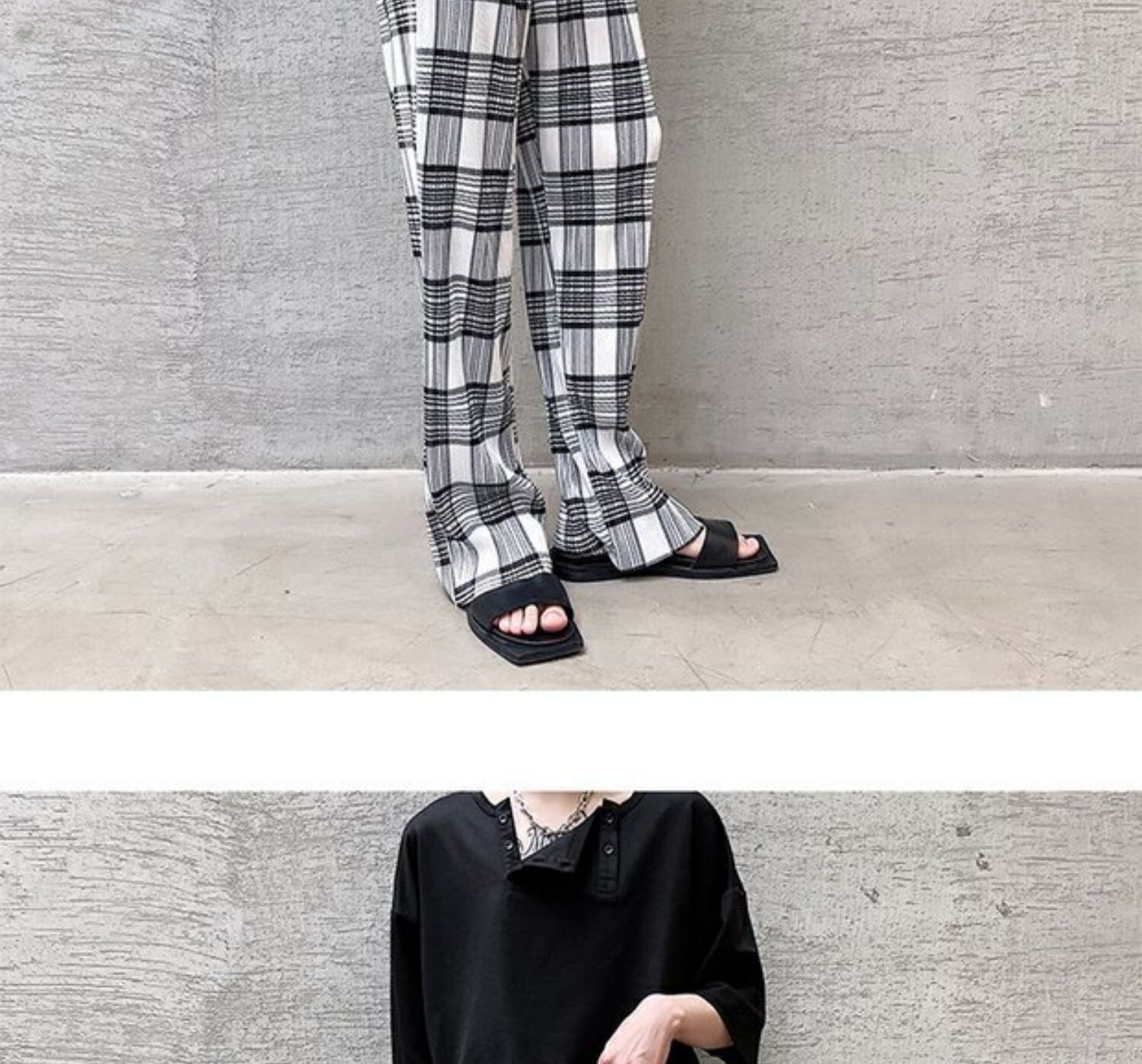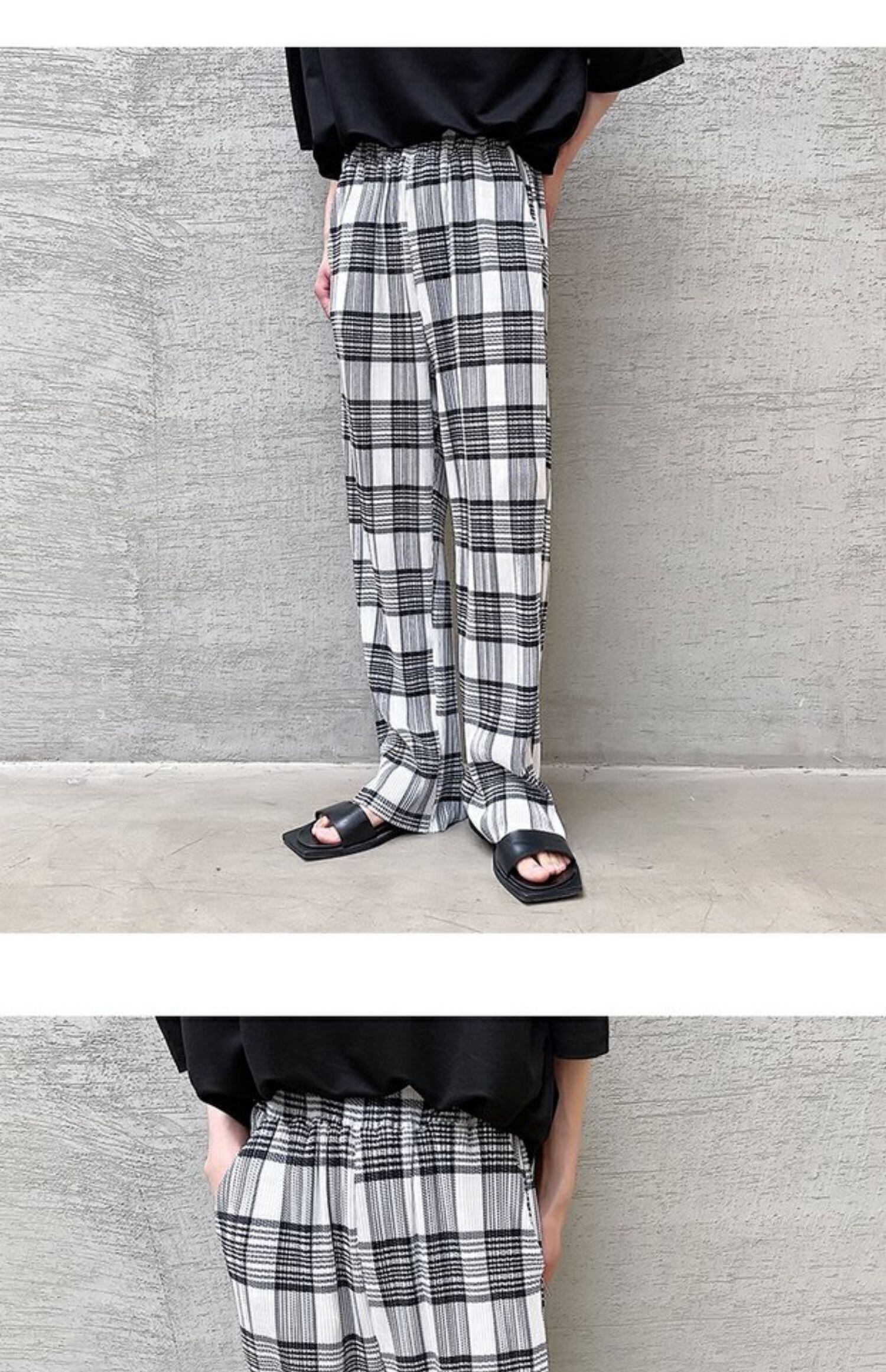病みカッコイイ メンズファッション ストリートファッション ヒップホップ 個性的 裏原 スタンダードハイウェストウェスト薄手格子柄パンツ ルーズプリーツレッド レトロ ✝ おしゃれ メンズ 2838723584