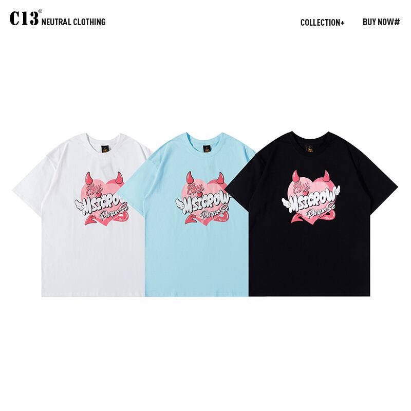 病みカッコイイ メンズファッション ストリートファッション ヒップホップ 個性的 裏原 サマープリントルーズTシャツ コットン ストリート 夏物 ✝ メンズファッション51646075346